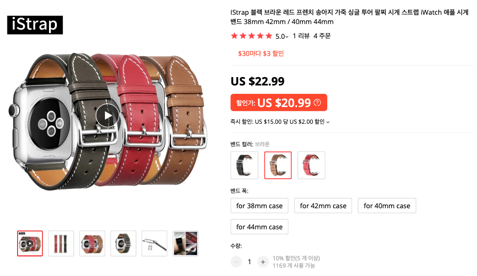 두 번째 구매도 만족입니다. 주변에도 시계 스트랩은 어중간한 3-5만원대 제품보다는 이 istrap을 추천할 정도로 만족하고 있어요. 특히 애플워치용 가죽 스트랩이 가격대가 높으니 인조가죽이나 제대로 피할하지 않은 두꺼운 가죽 스트랩을 구매하느니 2만원에 괜찮은 제품을 해외구매하는 것도 좋은 선택이 되겠습니다.