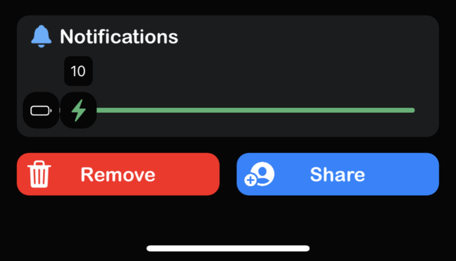 또 하나 유용한 기능은 배터리 잔량이 일정량 이하로 떨어지면 경고 알림을 보낼 수 있다는 것입니다. 각 장치의 상태 메뉴로 진입해 알림을 보낼 배터리 잔량을 설정하면 아이폰과 애플 워치 등 등록 된 기기에 해당 여부가 표시되면서 배터리 부족을 경고할 수 있게 됩니다.