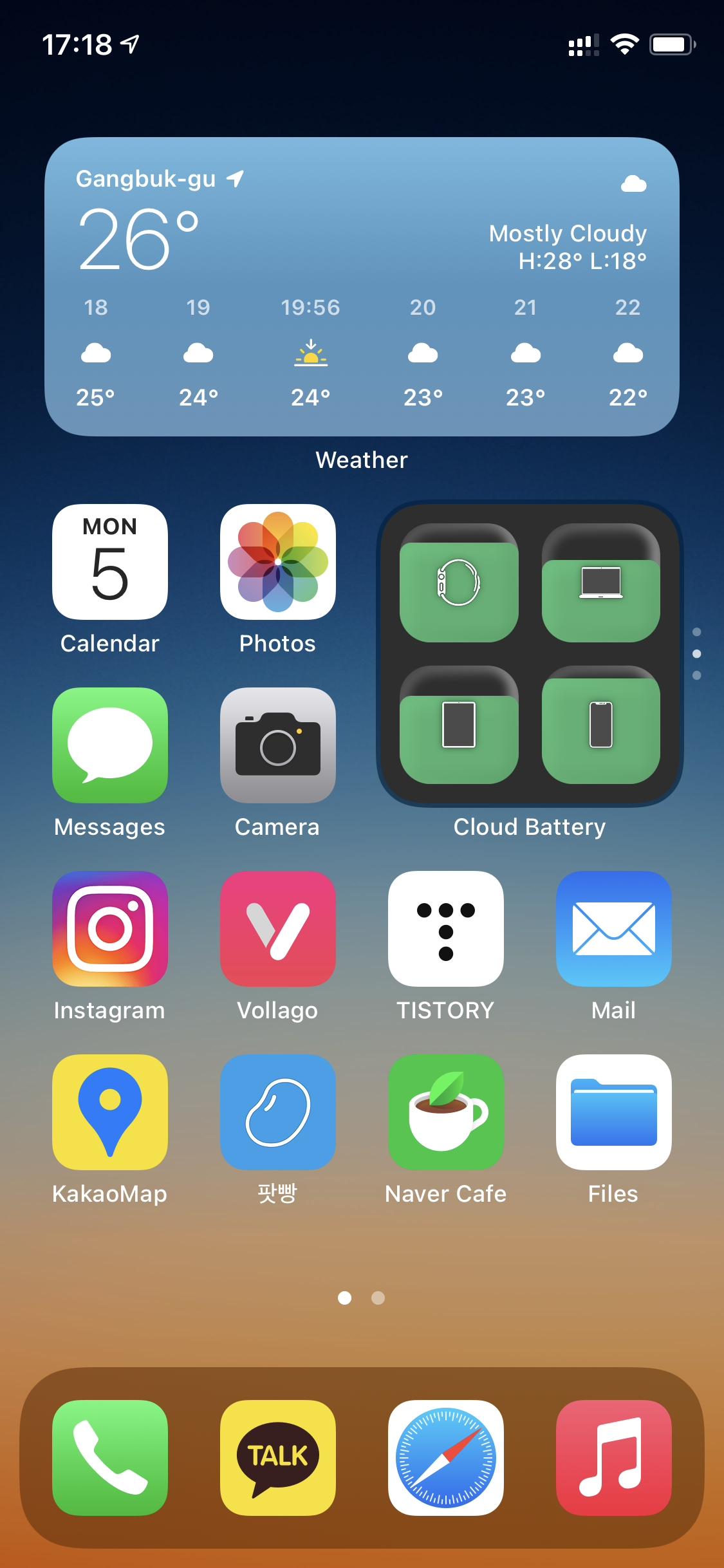 얼마 전에 우연히 알게 된 앱이 너무 만족스러워서 블로그를 통해 소개하려고 합니다. 아이폰과 아이패드, 맥, 에어팟, 애플 워치 등 애플 제품들을 다수 운용 중인 분들께 매우 유용하면서 가격도 무료. 사용 중인 기기들의 배터리 상태를 한 화면에 볼 수 있는 클라우드 배터리 (Cloud battery)입니다.