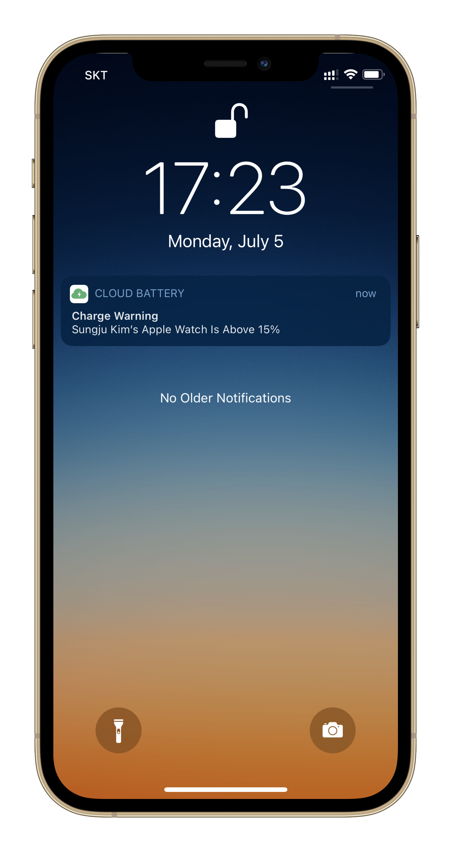 또 하나 유용한 기능은 배터리 잔량이 일정량 이하로 떨어지면 경고 알림을 보낼 수 있다는 것입니다. 각 장치의 상태 메뉴로 진입해 알림을 보낼 배터리 잔량을 설정하면 아이폰과 애플 워치 등 등록 된 기기에 해당 여부가 표시되면서 배터리 부족을 경고할 수 있게 됩니다.