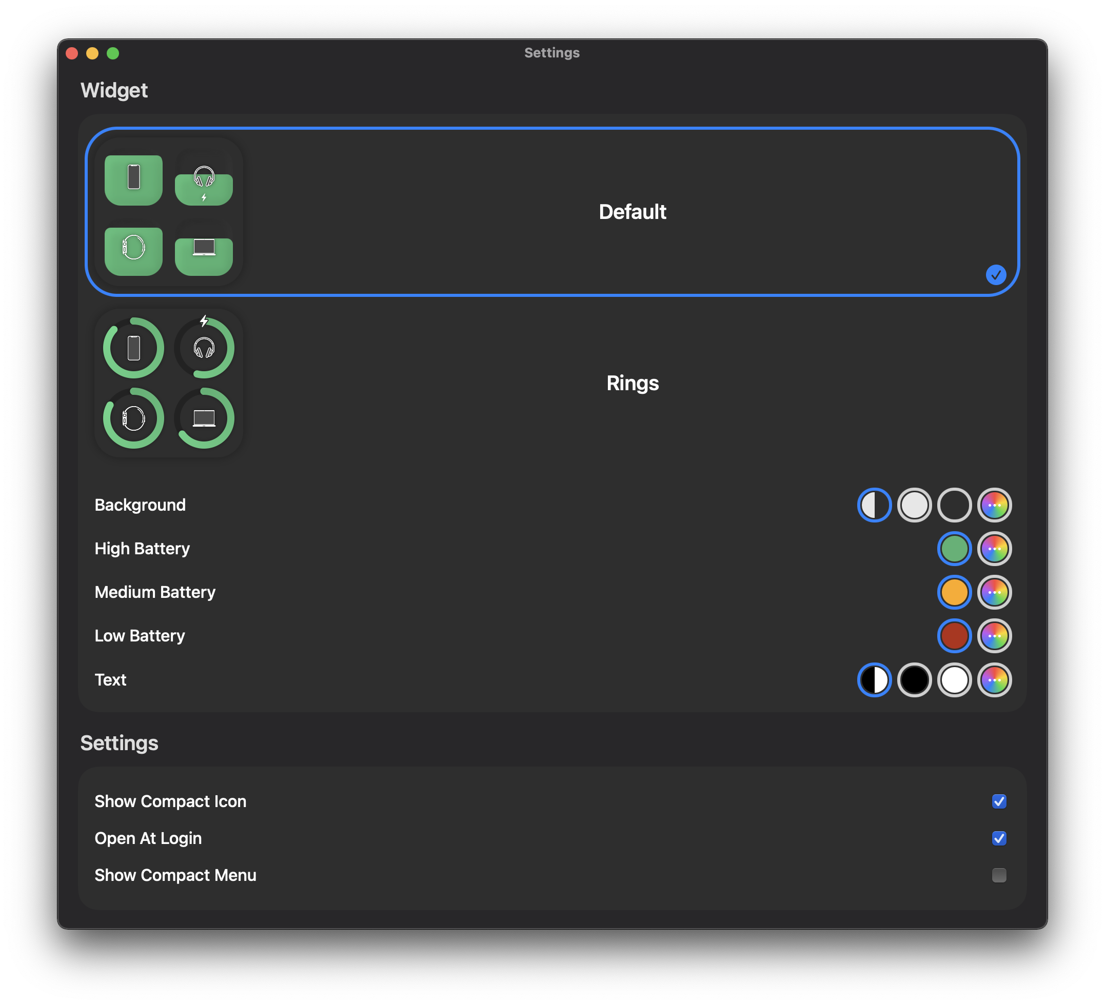 설정에 진입하면 아이콘 표시 형태와 배경, 글자 등의 색상을 직접 지정할 수 있습니다. 생각보다 커스터마이징 폭이 꽤 넓어서 기기 테마에 맞춰 쓸 수 있겠어요. 물론 저는 기본으로 사용하겠지만. 맥용 앱에서는 재시동 시 자동 시작, 상태 바 아이콘 표시, 표시 간략화 등의 옵션을 제공합니다.