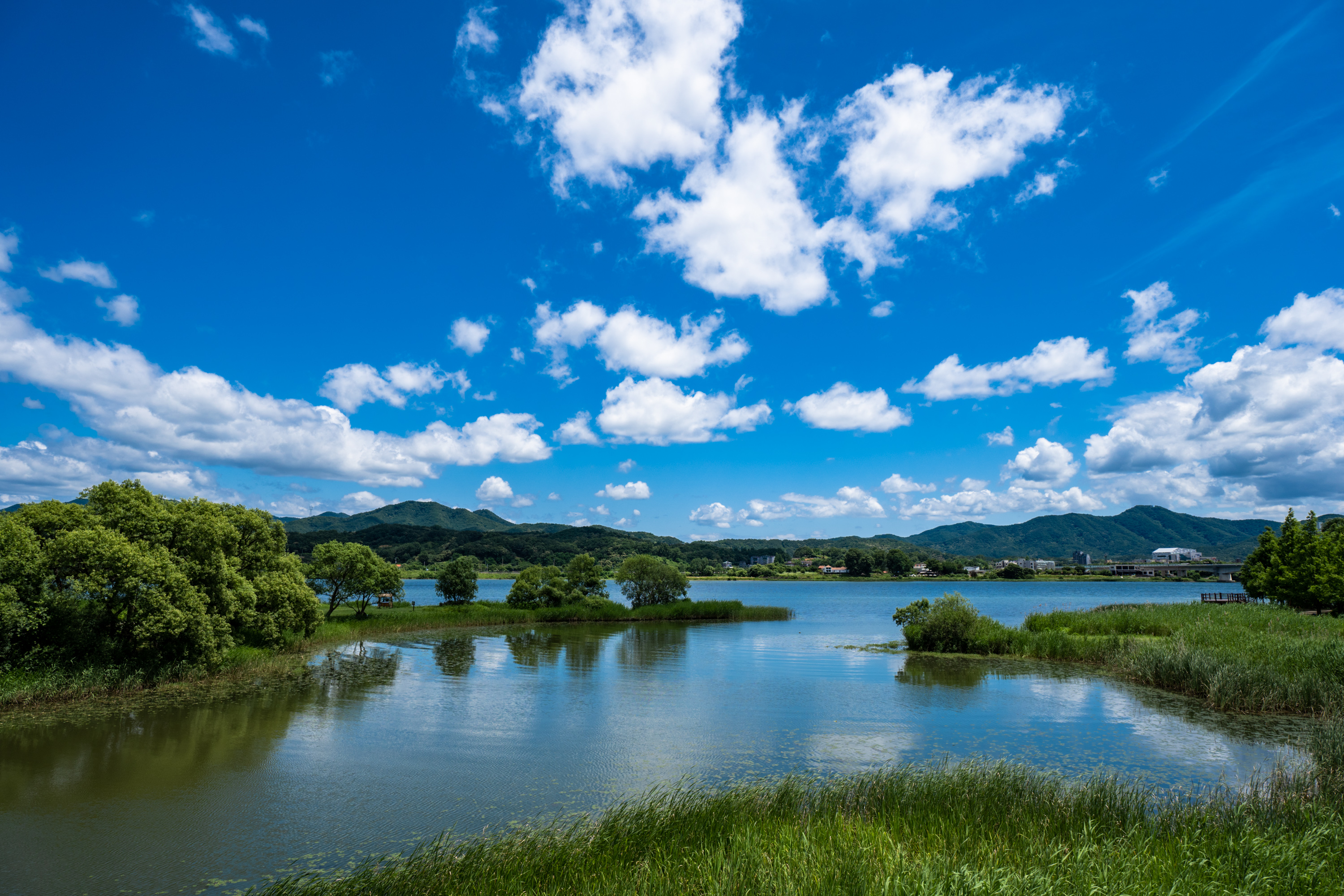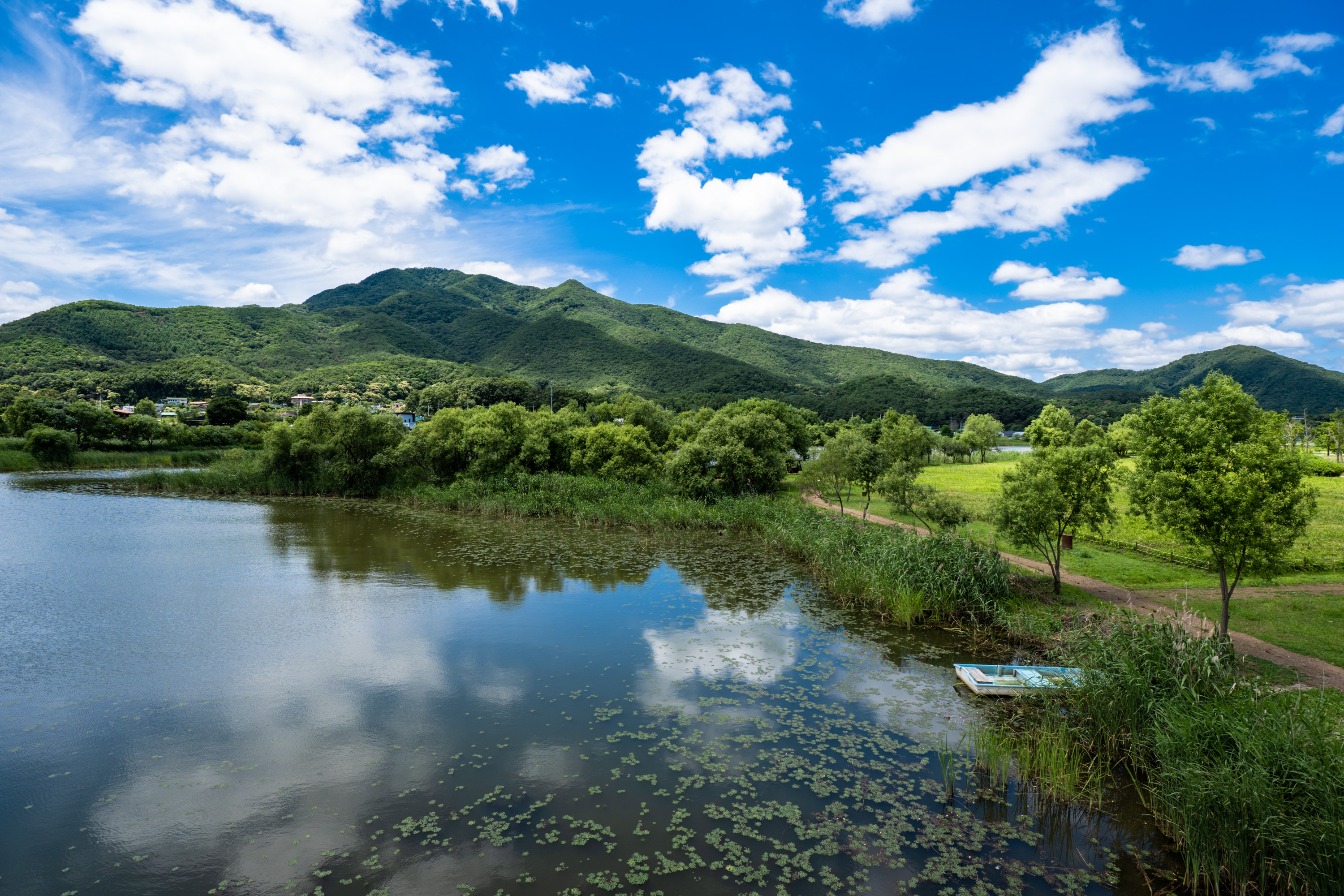 이쪽에서 유명한 두물머리는 요즘 사람이 너무 많아져 한적함을 기대하고 다녀오기엔 어려운데, 물의 정원은 아직 우리가 기대하는 여유를 충분히 가지고 있습니다. 무더위가 끝나고 선선한 바람 불어오기 시작할 때쯤 다시 다녀오려고요. 그때도 하늘이, 구름과 푸르름이 이날 같으면 좋겠습니다.