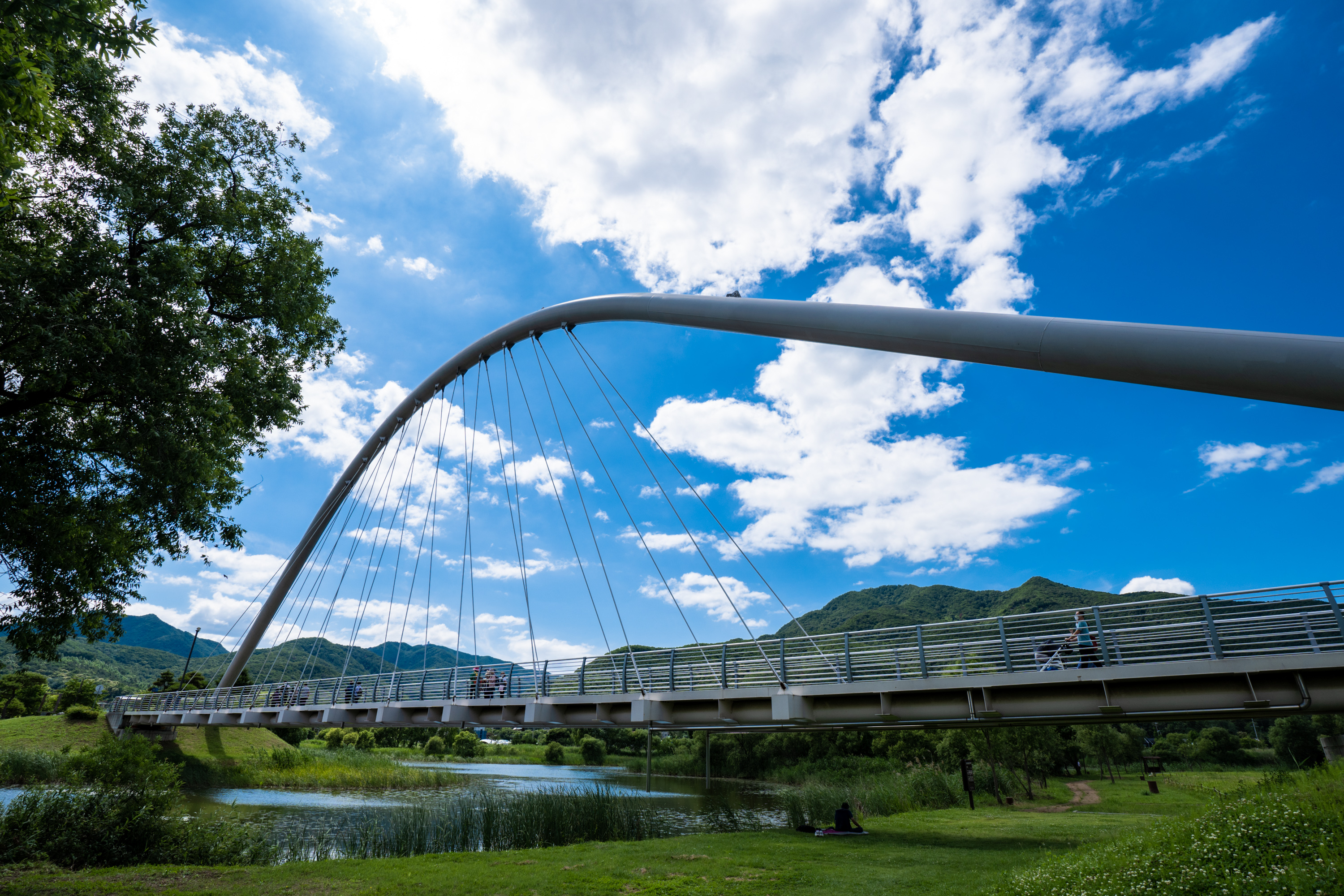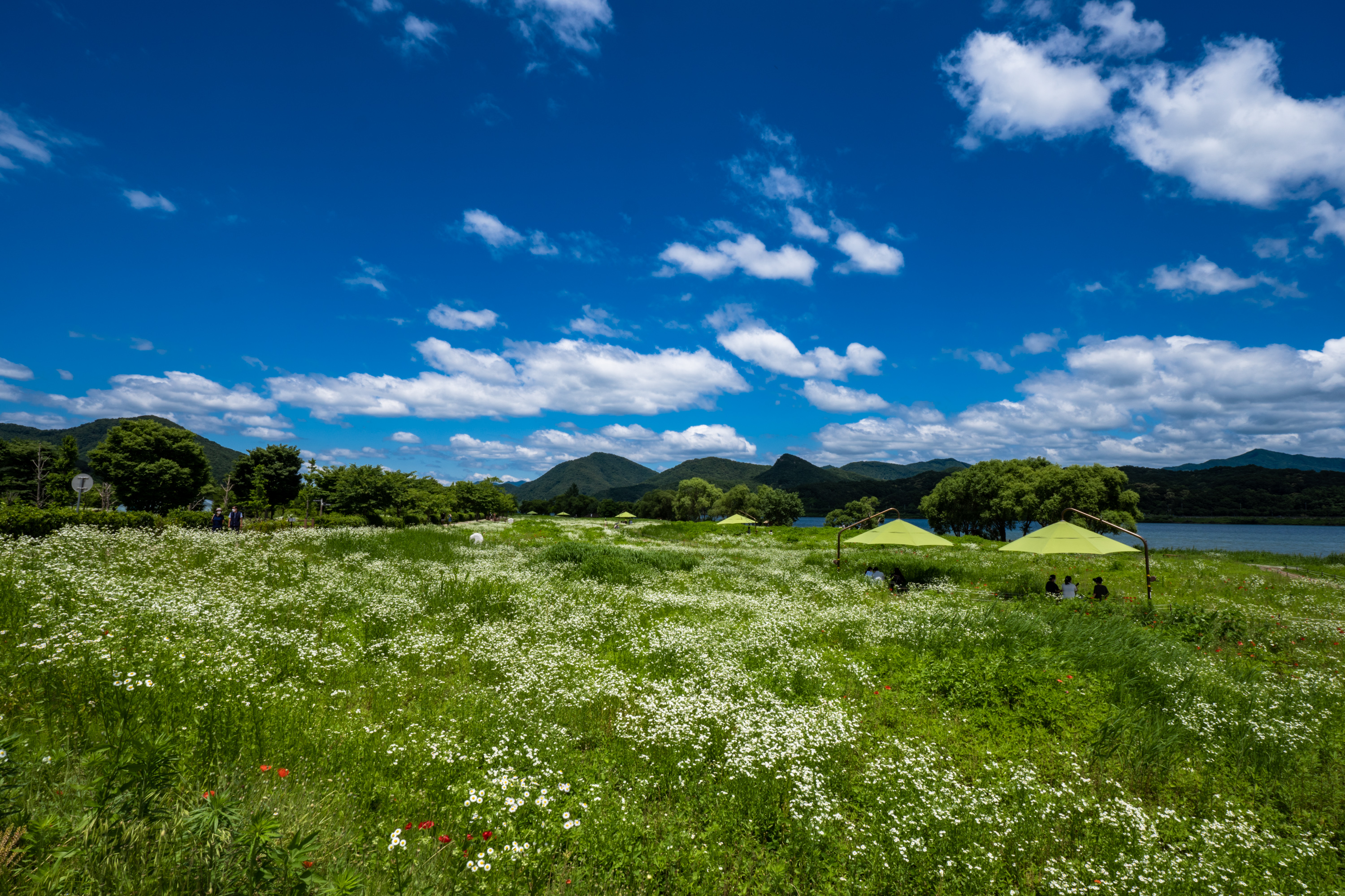 다리를 건너면 만날 수 있는 넓은 꽃밭과 긴 산책로. 녹색 들판에 흩뿌려진 듯 핀 흰 꽃은 개망초라고 합니다. 생김새때문에 쉬운 말로 달걀꽃이라 불리기도 한다더라고요. 거기에 제 철 맞아 핀 붉은 양귀비꽃까지. 멋진 하늘과 깨끗한 공기 때문에 유독 근사했던 풍경이었습니다. 이 날 사진 중 가장 마음에 든 한 컷.