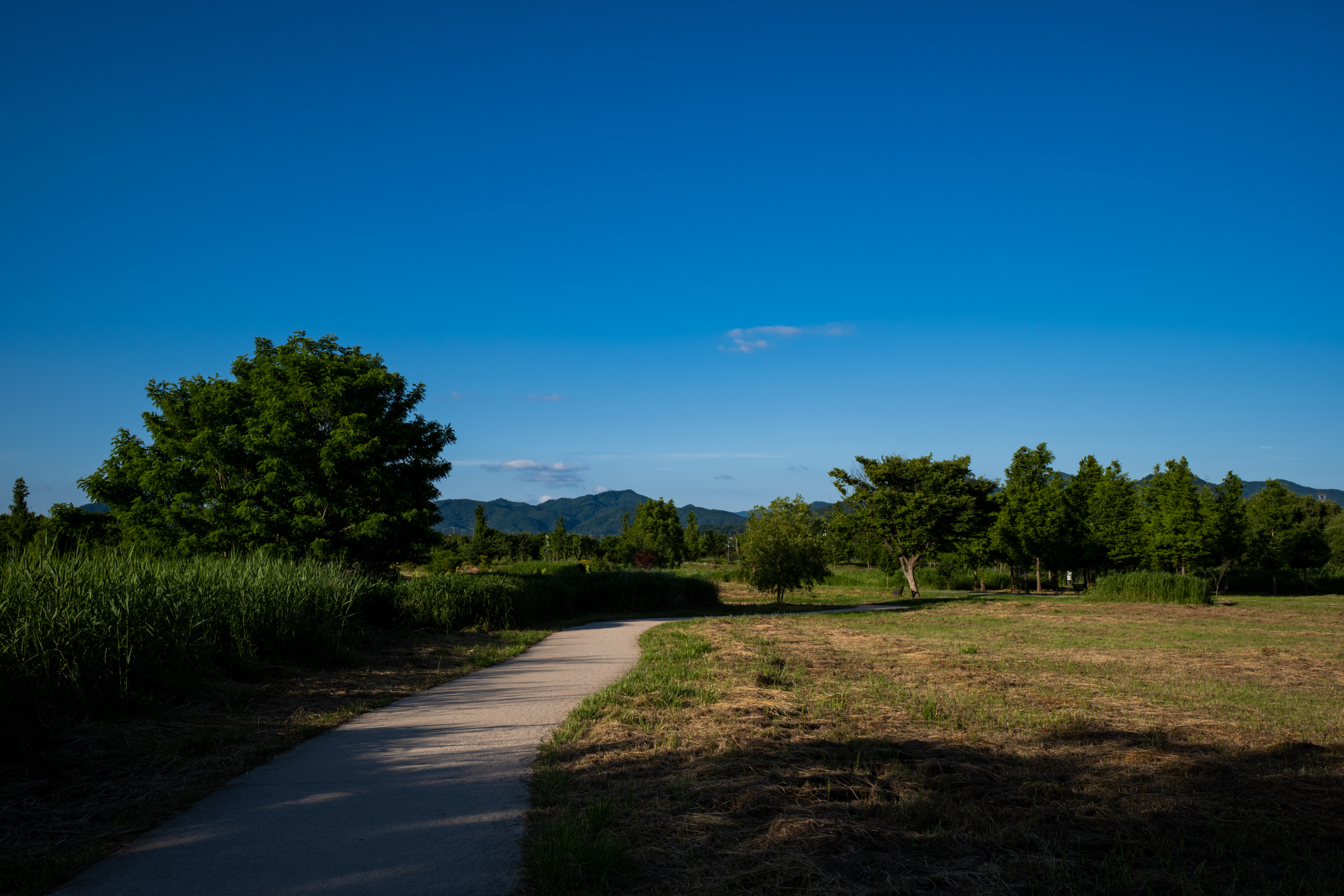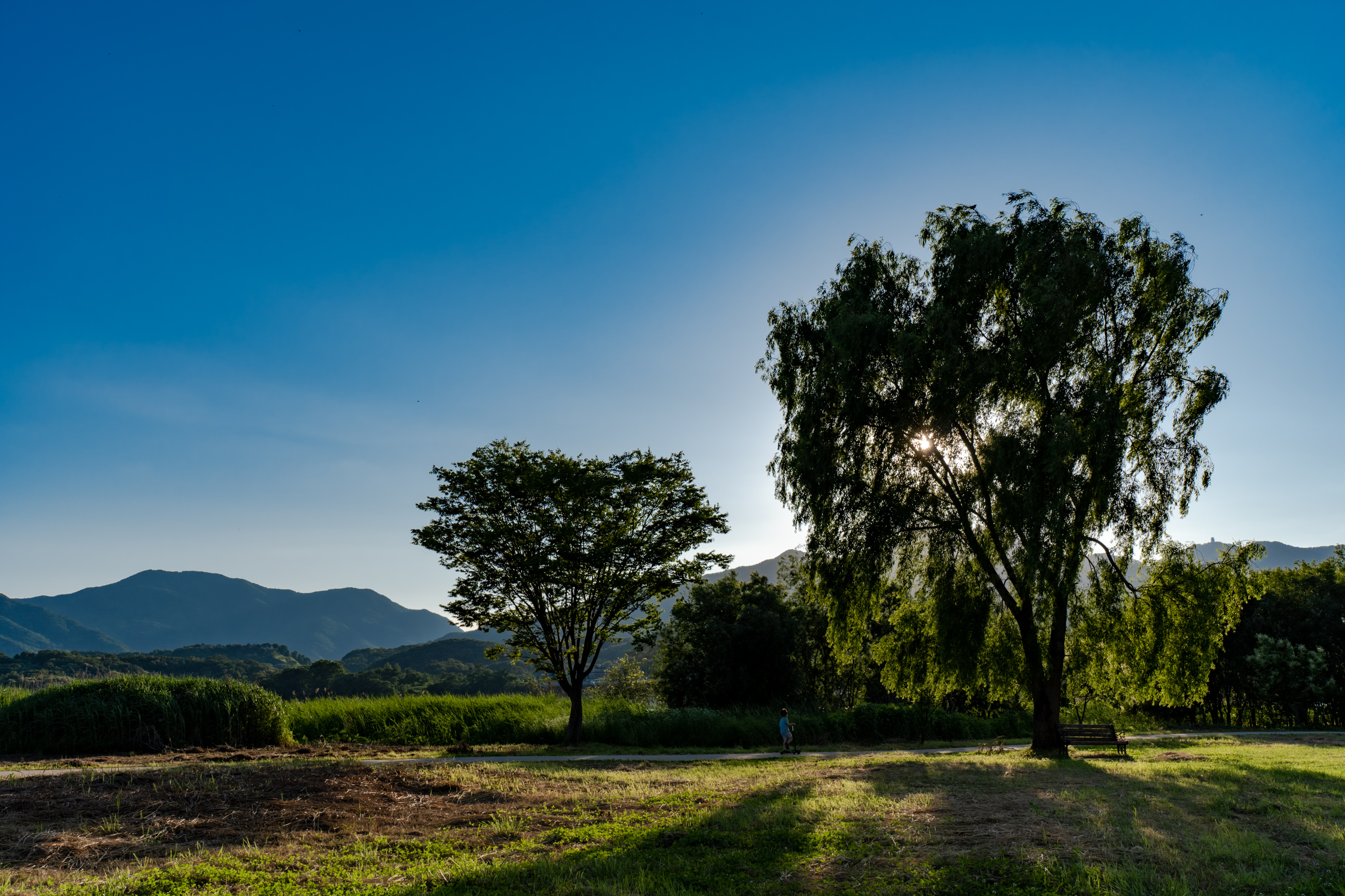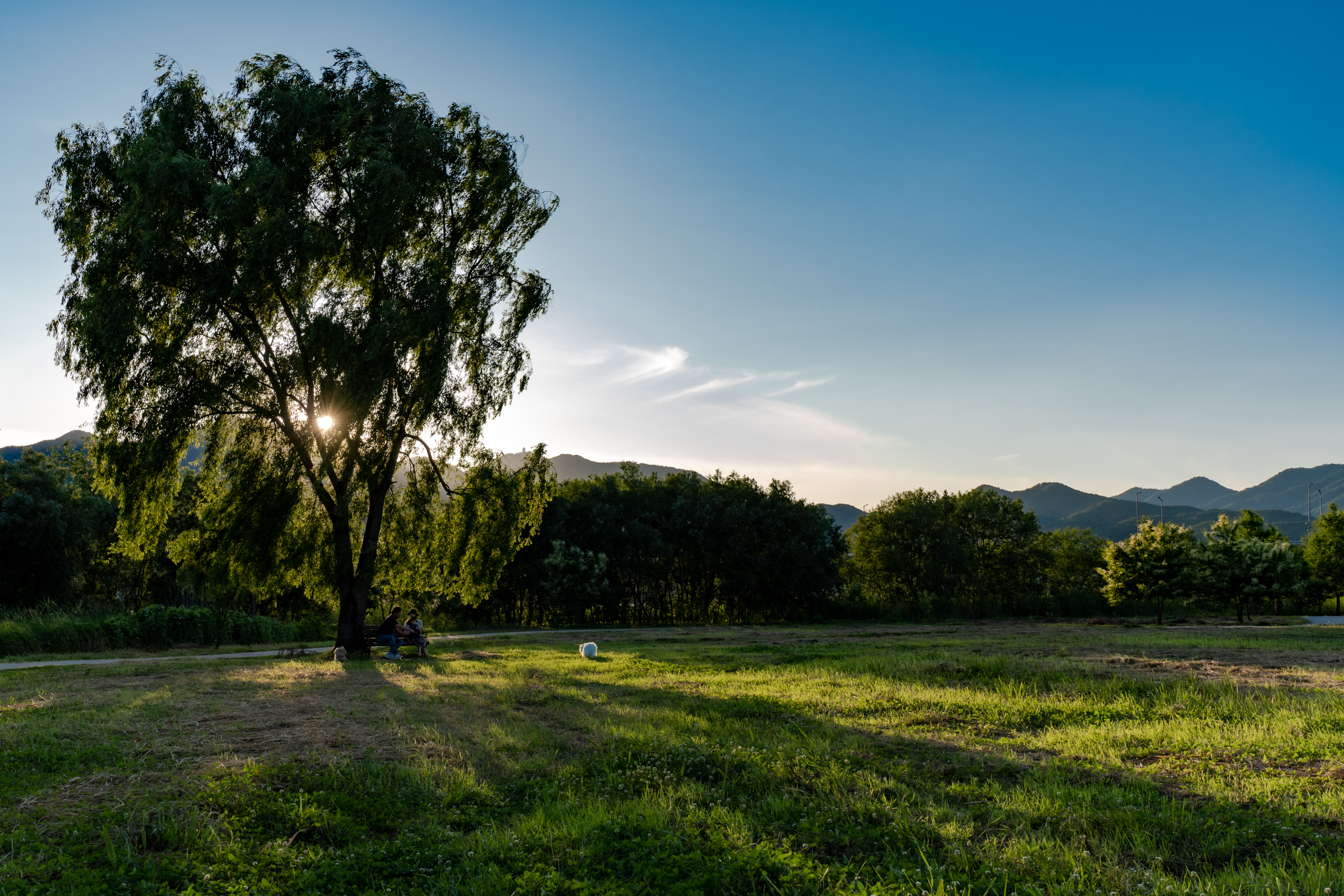 이날은 산책로 사이의 아름드리 나무 아래 벤치에 앉아 해질때를 기다렸습니다. 한쪽 귀로는 좋아하는 음악을, 반대쪽 귀로는 바람소리를 들으며 두 시간쯤 흘려 보냈는데 길게 늘어선 햇살 앞으로 킥보드를 타고 달리는 신나는 아이의 실루엣, 반짝이는 강아지의 털이 기억에 남습니다. 덕분에 여름해 질 때까지 걸린 제법 긴 시간이 지루하지 않았어요.
