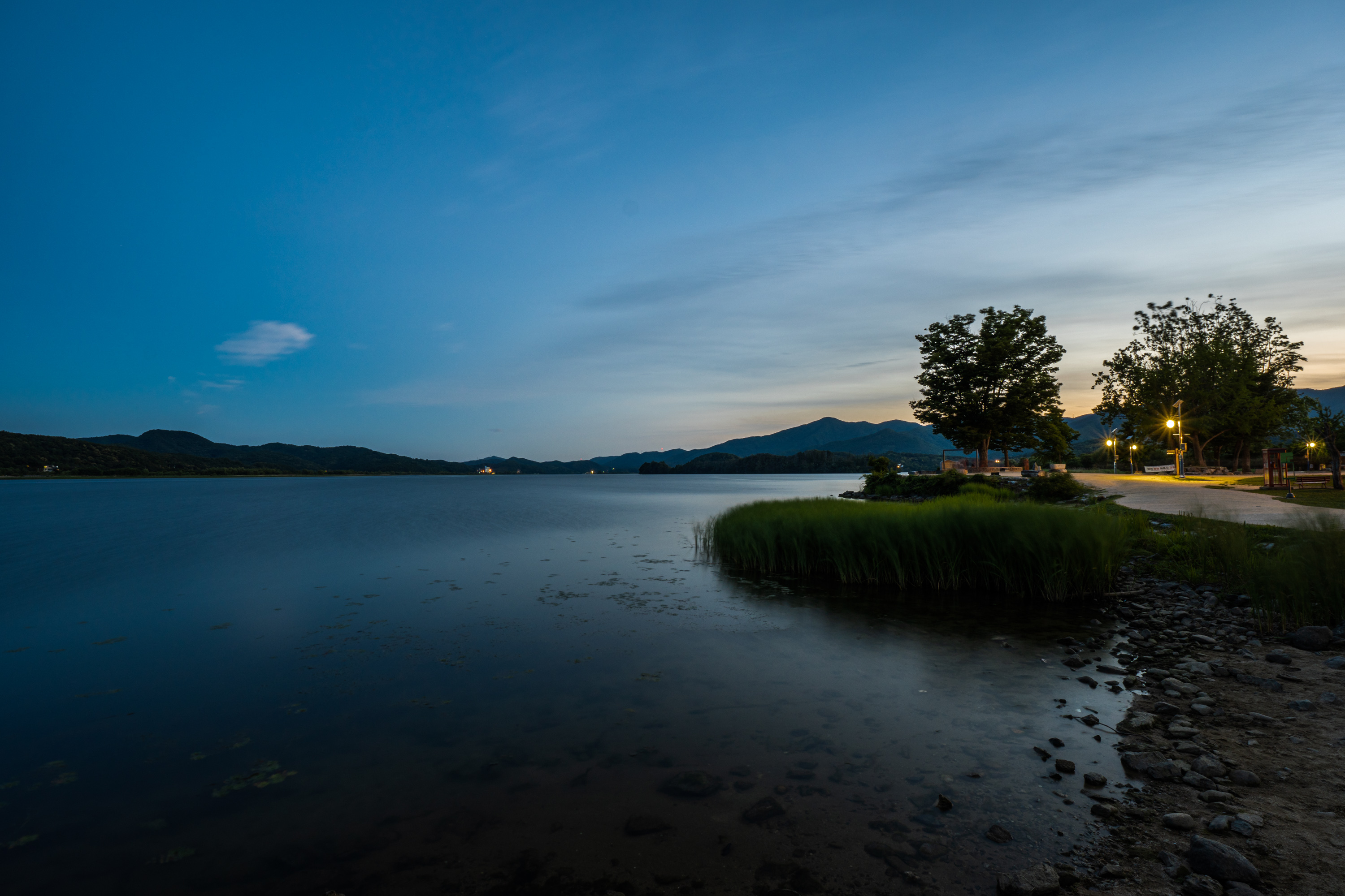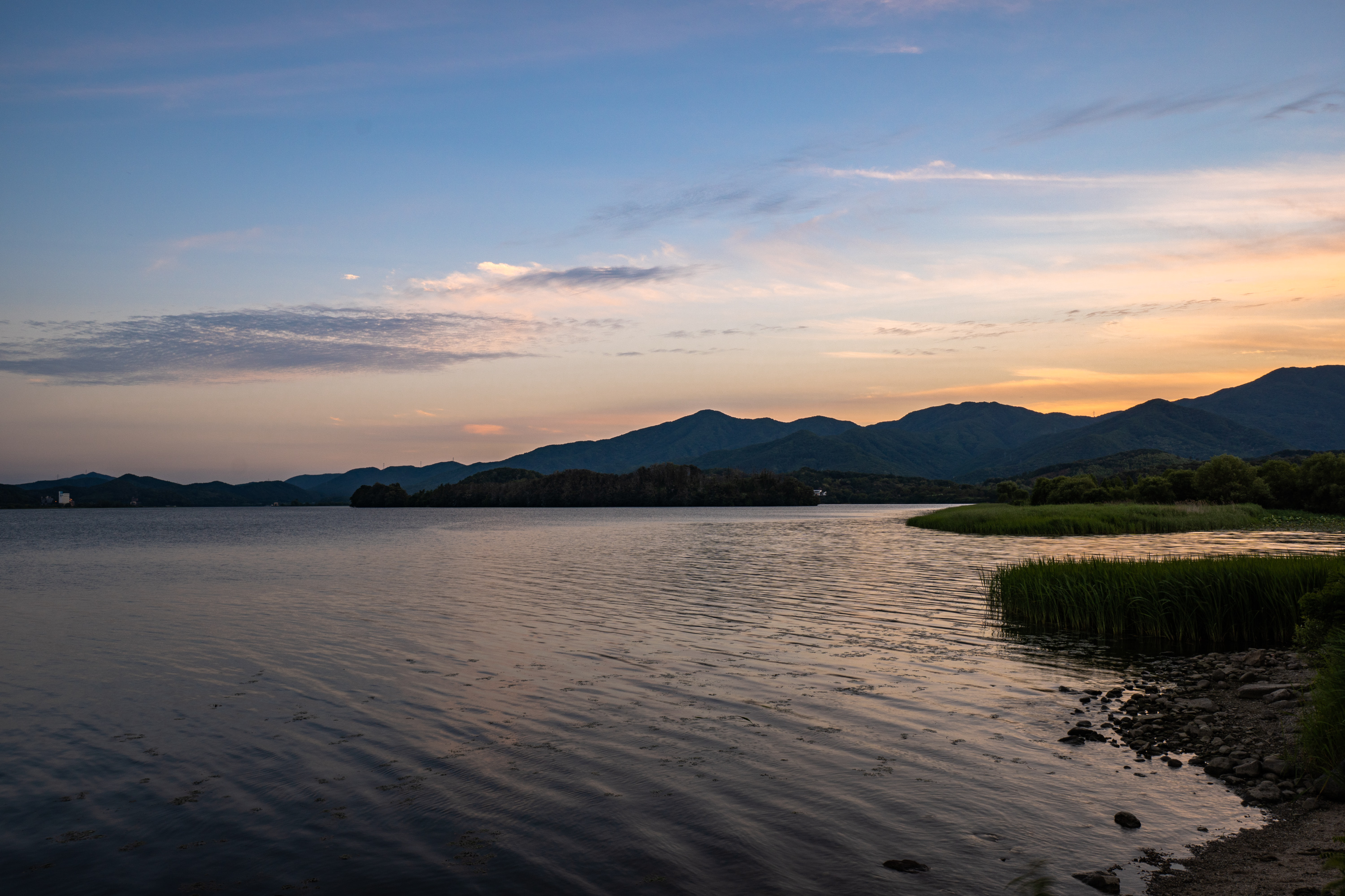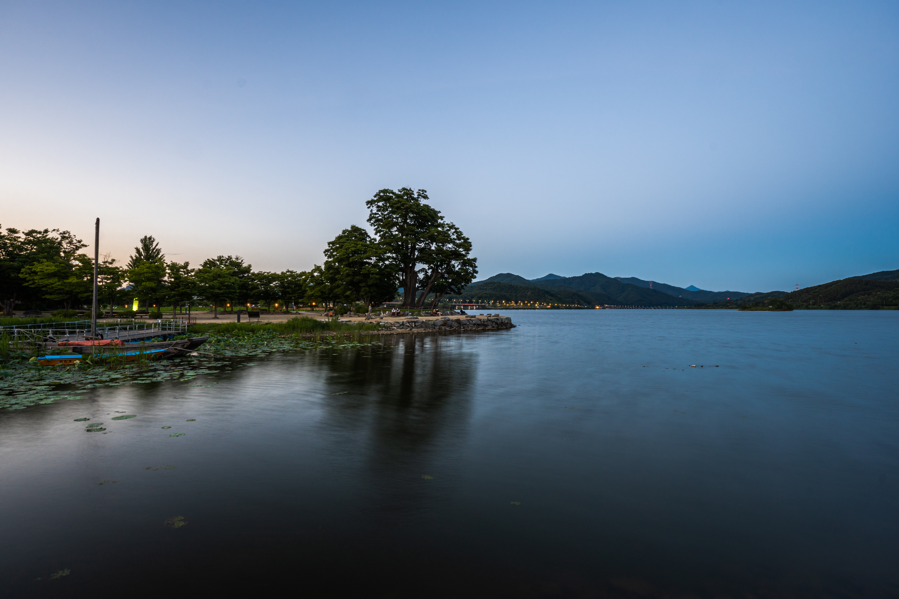 풍경이 완전히 어두워지기 전에 담은 해질녘 두물머리 풍경. 물이 얕고 잔잔한 이곳은 셔터 속도를 길게 설정해 장노출로 담으면 특히 아름답습니다. 도시보다 시간이 천천히 흐르는 듯한 이곳만의 매력을 표현하기에도 좋고요.