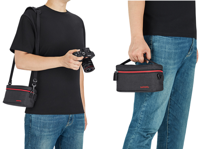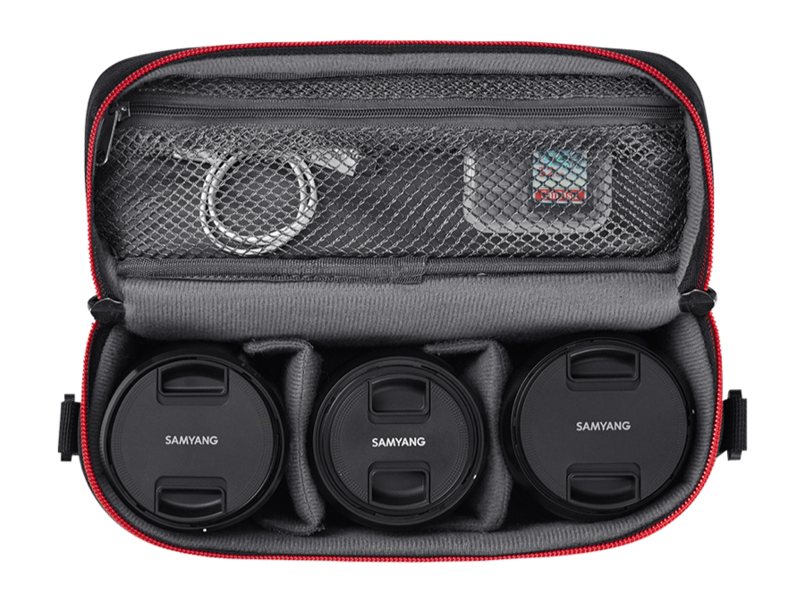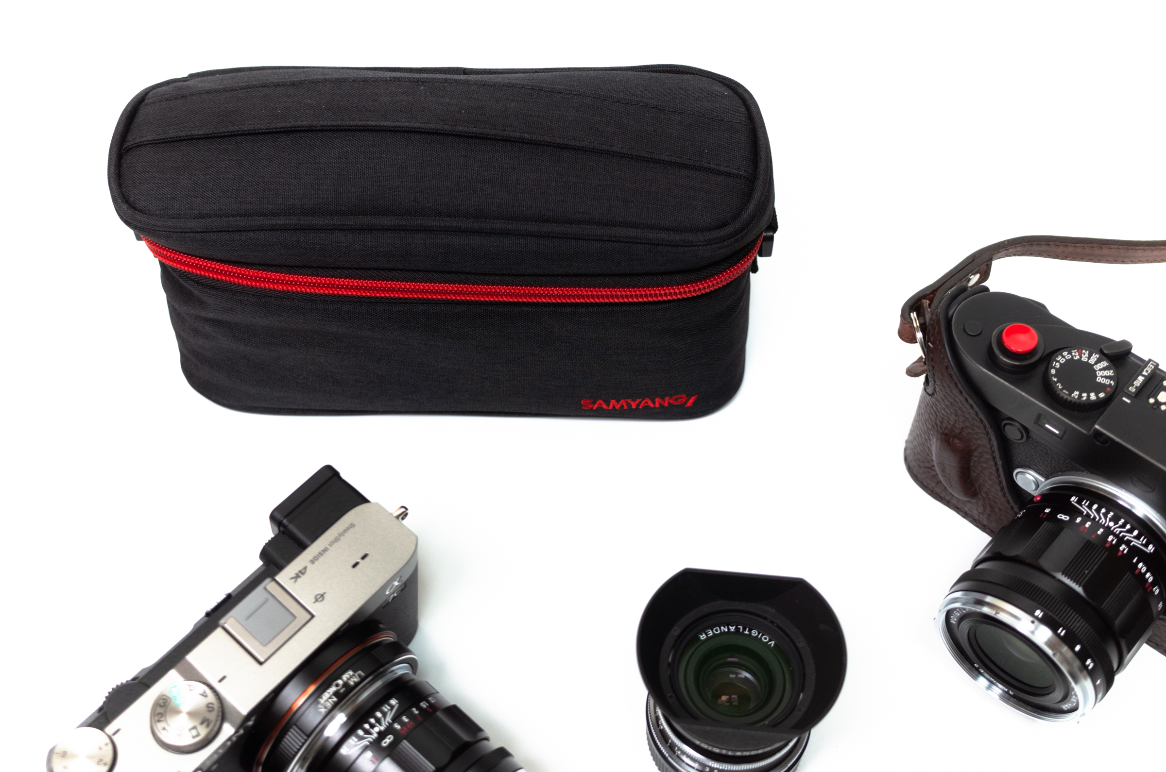 삼양에서 나온 타이니 백입니다. 삼양의 소형 렌즈 Tiny but 시리즈 보관, 휴대 용도로 기획된 가방이라 소형 렌즈에 적합한 크기로 만들어졌습니다. 소형 렌즈 세 개를 넣을 수 있는 내부 공간에, 내부 파티션 배치로 카메라까지 보관할 수 있어서 매력적으로 보였습니다. 가격은 3만원으로 좀 비싼 편이지만 해외 사이트를 찾아봐도 이 사이즈에 이 정도 구성을 찾을 수 없어서 구매했습니다.