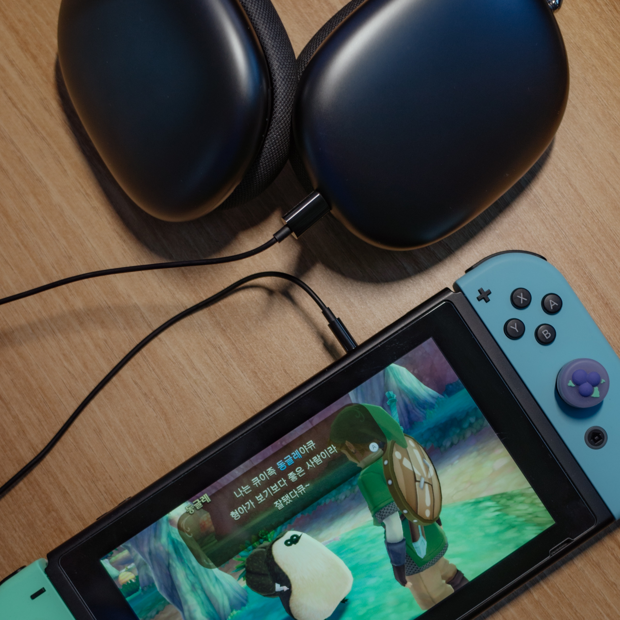 비싼 가격이지만 에어팟 맥스로 유선 오디오 연결하는 방법이 이것뿐이니 현재까진 울며 겨자먹기로 선택할 수밖에요. 이미 구매했으니 잘 써야죠 뭐. 노이즈 캔슬링 사운드로 젤다의 전설을 하니 좋긴 합니다(?)