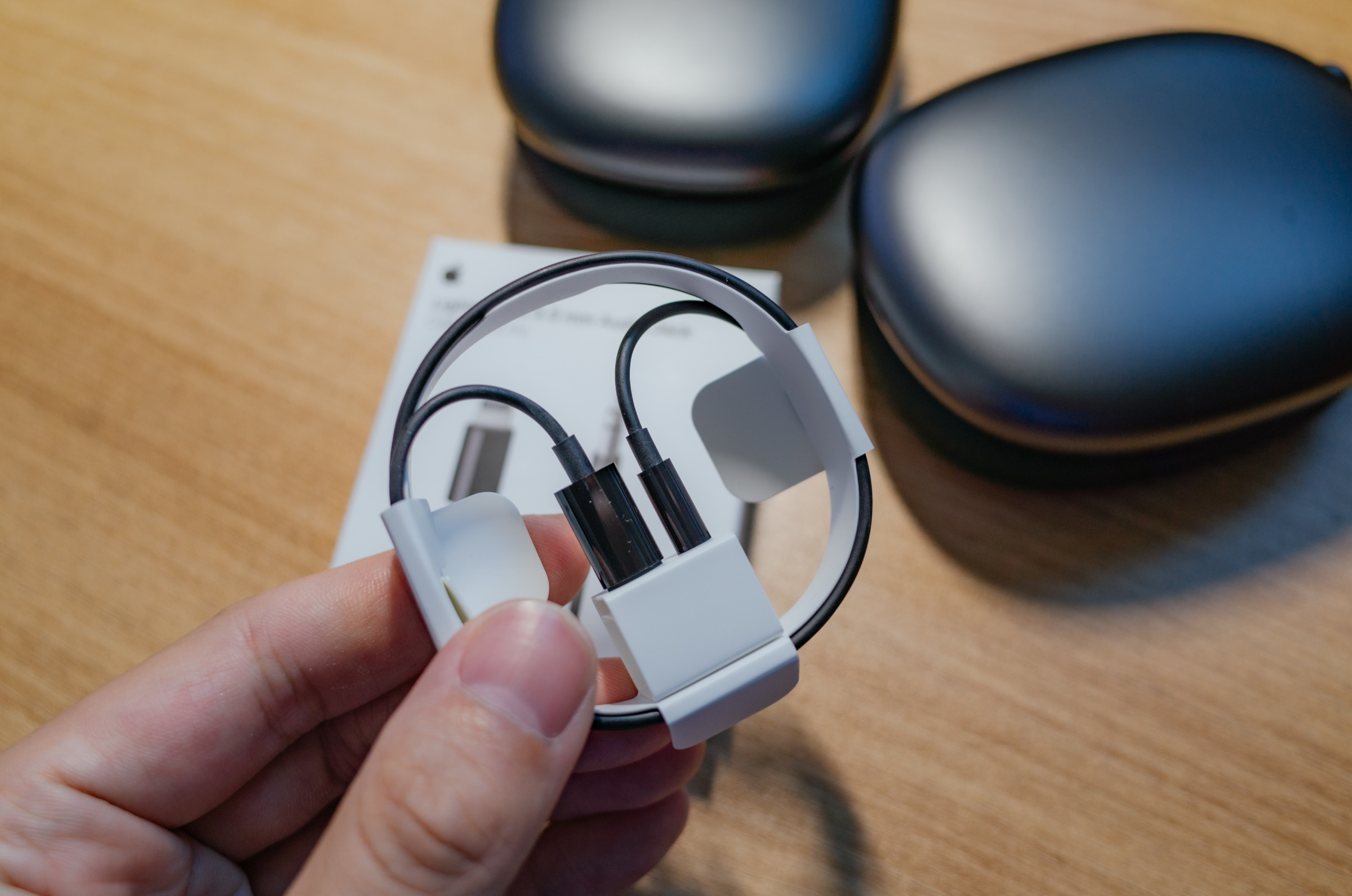 또 하나, 많은 분들에게 꼽히는 단점으로 ‘유선 연결의 제약’을 들 수 있습니다. 대부분의 무선 헤드폰 제품이 3.5mm 헤드폰 잭 또는 USB C 포트 연결을 통해 유선 오디오 연결을 지원하고 기본 구성품으로 제공합니다. 하지만 본체에 3.5mm 헤드폰 잭도, USB C 포트도 없는 애플 에어팟 맥스는 애플 라이트닝 포트를 통해 유선 오디오 연결을 지원합니다. 그리고 그에 필요한 라이트닝 to 3.5mm 오디오 케이블을 별매로 그것도 45000원에 판매합니다. 이전에 소니 WH-1000XM4를 사용했기 때문에 더 야속하게 느껴졌습니다.