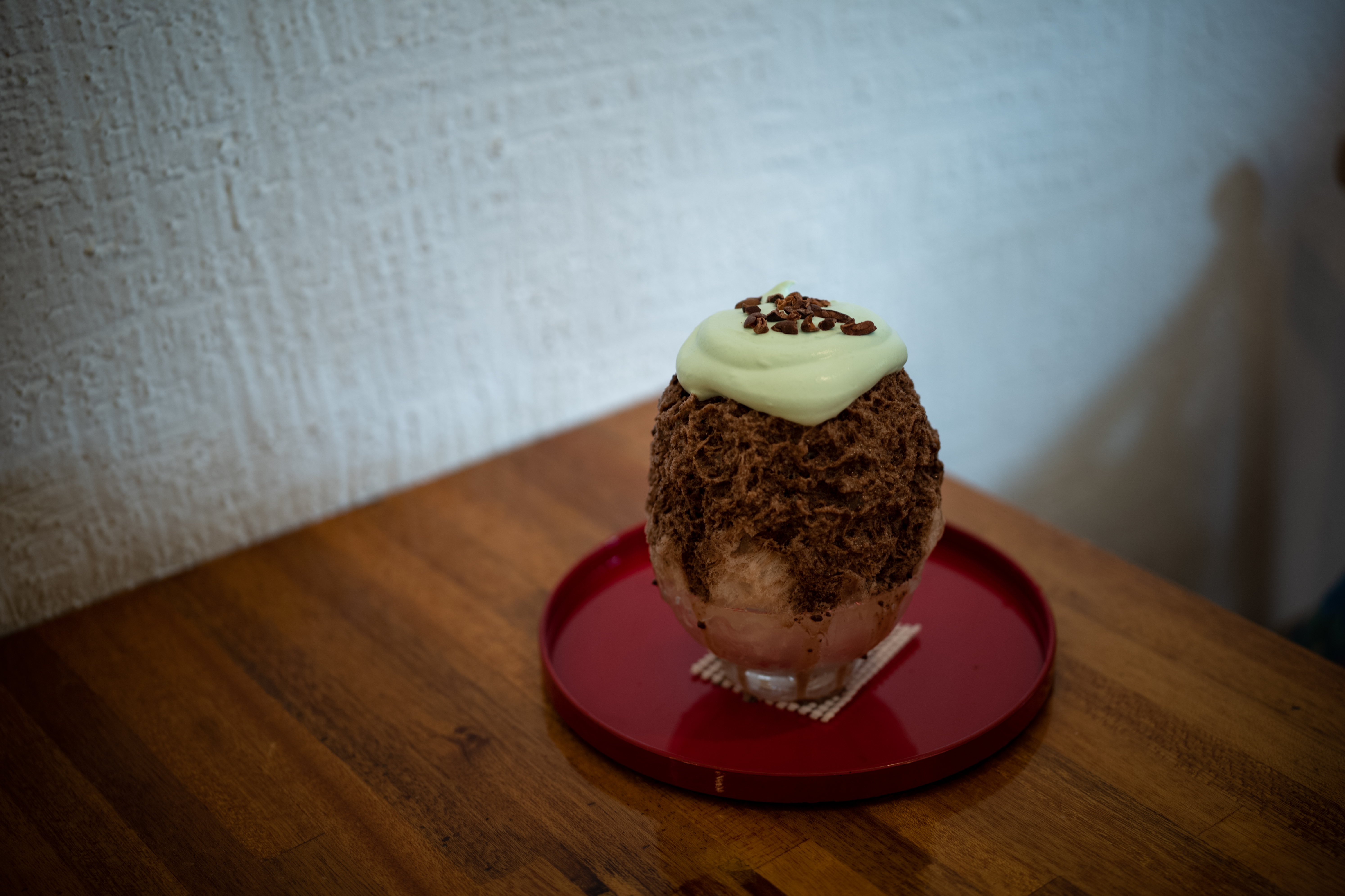다음은 민초 빙수. 민초파의 만행(?)은 점점 더 다양한 장르로 빠르게 퍼져 나갑니다. 하지만 부빙의 민초 빙수는 평소 민트 초코를 즐기지 않는 분들도 충분히 즐길 수 있는 맛입니다. 얼음 위에 초콜릿 얼음을 더하고 그 위에 민트 크림을 올려 마무리했는데, 크림의 양이 많지 않고 향도 강한 편이 아니라 입문 수준의 민트초코 맛이었어요. 민트초코를 즐기는 분들께는 크림이 너무 적어서 불만일 수 있겠더라고요. 나중에는 민트 없이 초콜릿 빙수만 먹게 되는 터라. 그래도 설빙이나 다른 빙수집에서 먹는 것보단 완성도가 조금 더 높다고 생각합니다.
