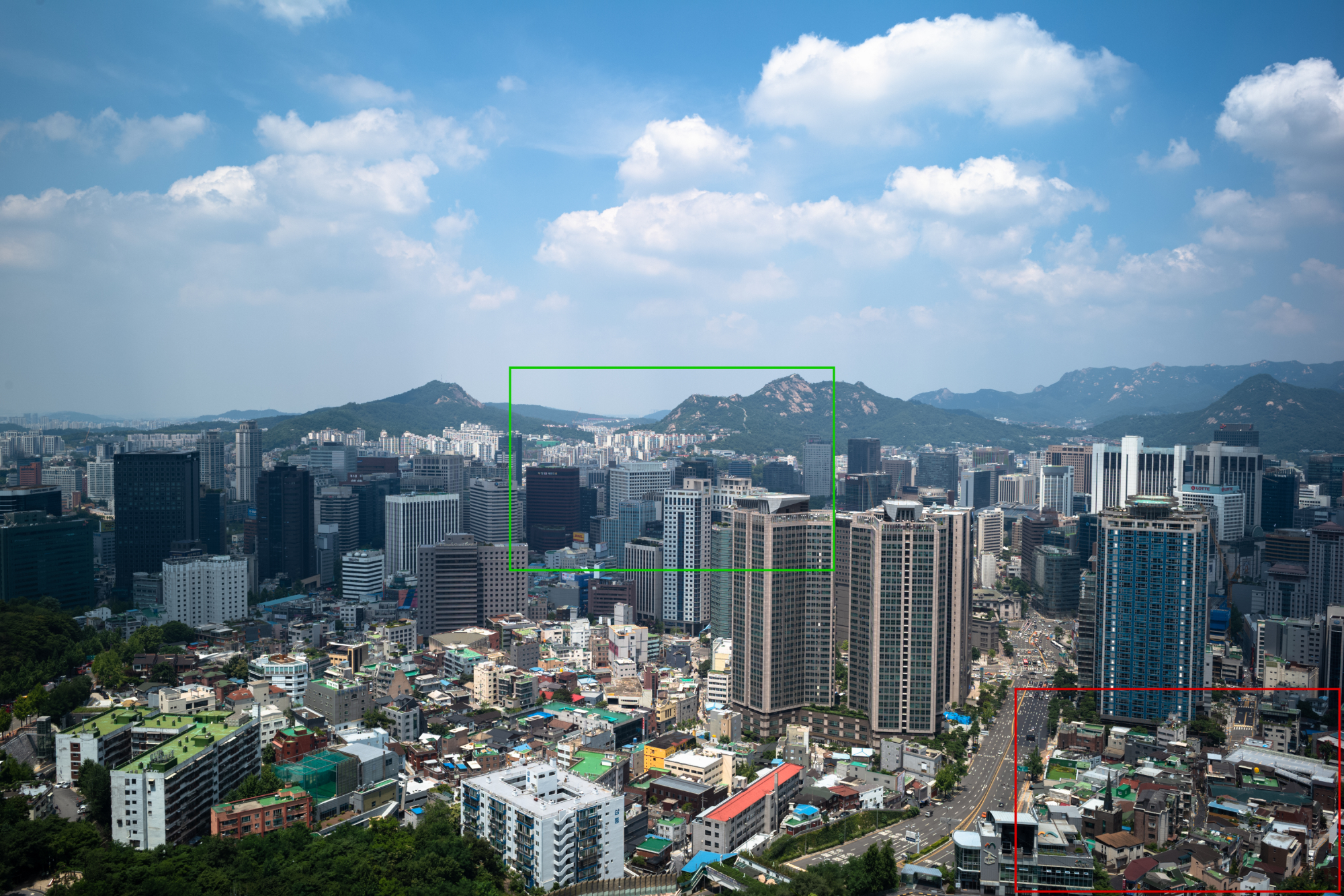 프레임의 차이를 가이드 라인을 사용해 비교해 보았습니다. 광각에선 1mm의 차이가 크다는 말처럼 35mm와 28mm의 차이가 제법 크더군요. 이런 넓은 프레임의 장점은 역시나 광활한 시야가 요구되는 풍경 촬영 또는 건축물 촬영 등에서 도드라집니다. 물론 본격적인 광각 촬영을 한다면 24mm 미만의 초광각 렌즈가 필요하겠지만 왜곡이나 주변부 광량 저하 등의 문제가 결과물에 영향을 미칠 수 있기 때문에 24-28mm 내외의 광각을 선호합니다.