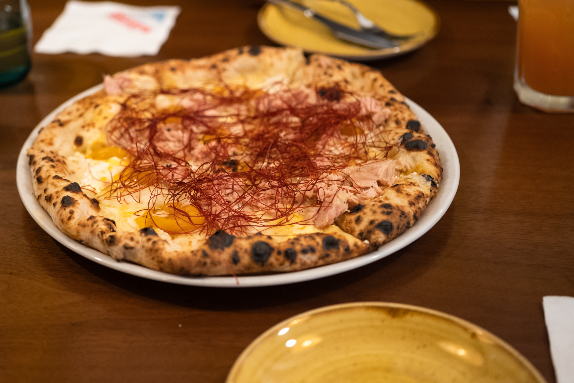외형이 심플하면서도 화려합니다. 도우와 치즈, 토마토가 모두 노란빛인데 그 위에 페페론치노(Fili di peperoncino)를 올려 색감을 더했습니다. 더 페페론치노가 맵지 않으면서 향이 매우 좋더군요. 피자 맛에 깊이를 더해 주는 느낌이랄까. 먹는 내내 이게 뭔데 이렇게 맛있지, 라고 생각했습니다.