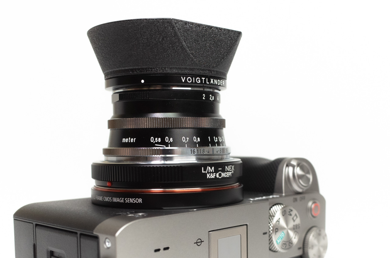 저는 서브 카메라 A7C에 보유 중인 M 마운트 렌즈들을 사용하기 위해 어댑터를 구매했어요. FE 렌즈가 없어서요. 울트론 빈티지라인 35mm f2 렌즈와의 조합은 상당히 가볍습니다. 아마도 주력이 될 듯.