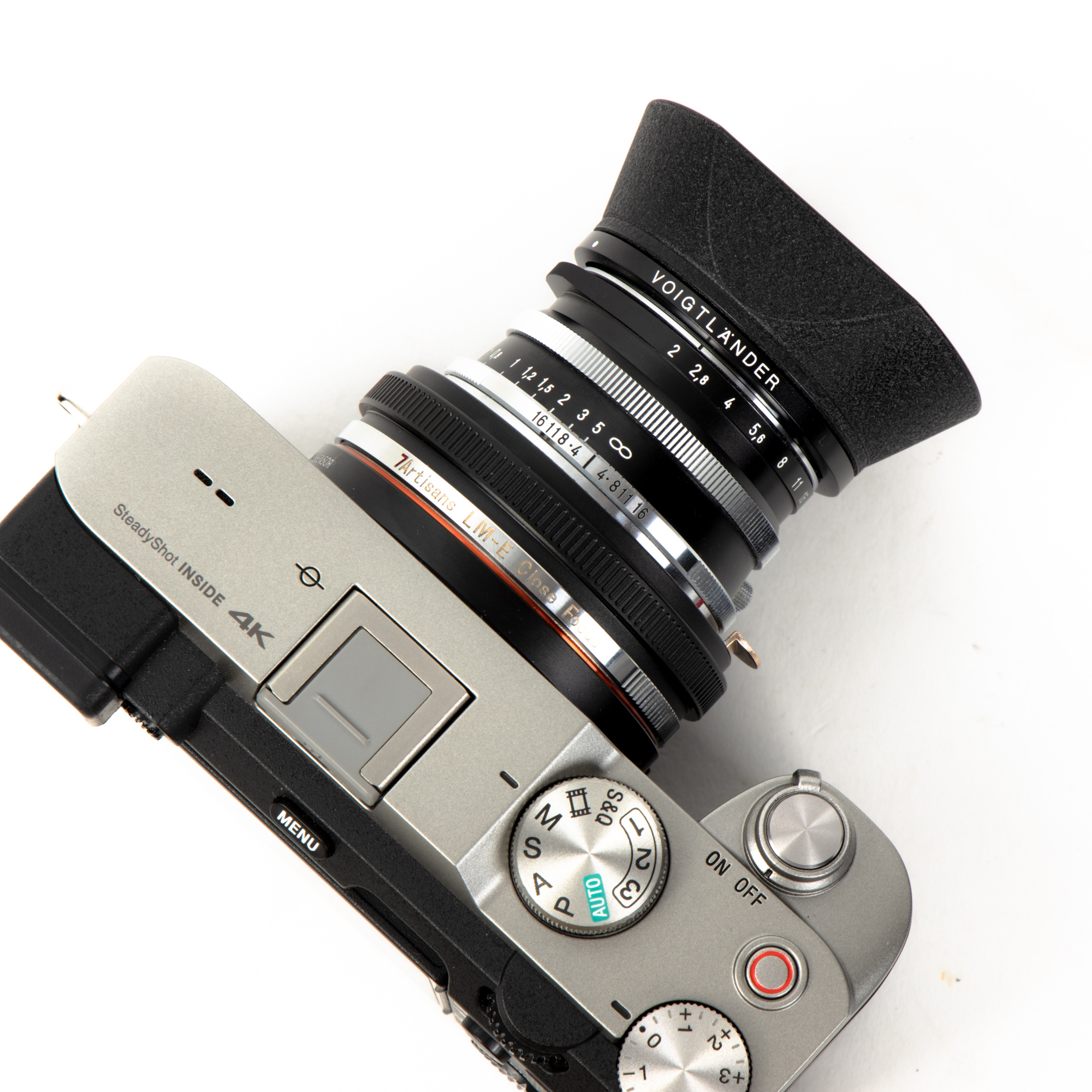 이대로 어댑터를 카메라에 마운트 하면 됩니다. 실버/블랙 투 톤이 보이그랜더 빈티지 렌즈와 잘 어울려서 언뜻 보면 전체가 렌즈처럼 보이기도 하네요.