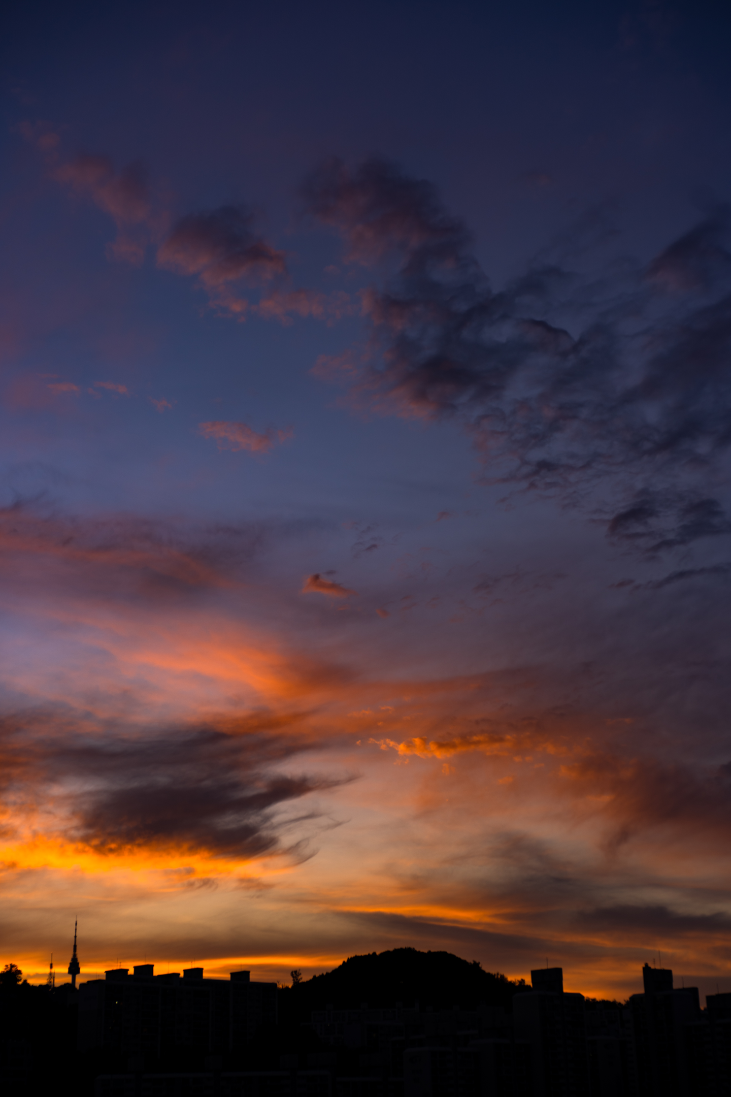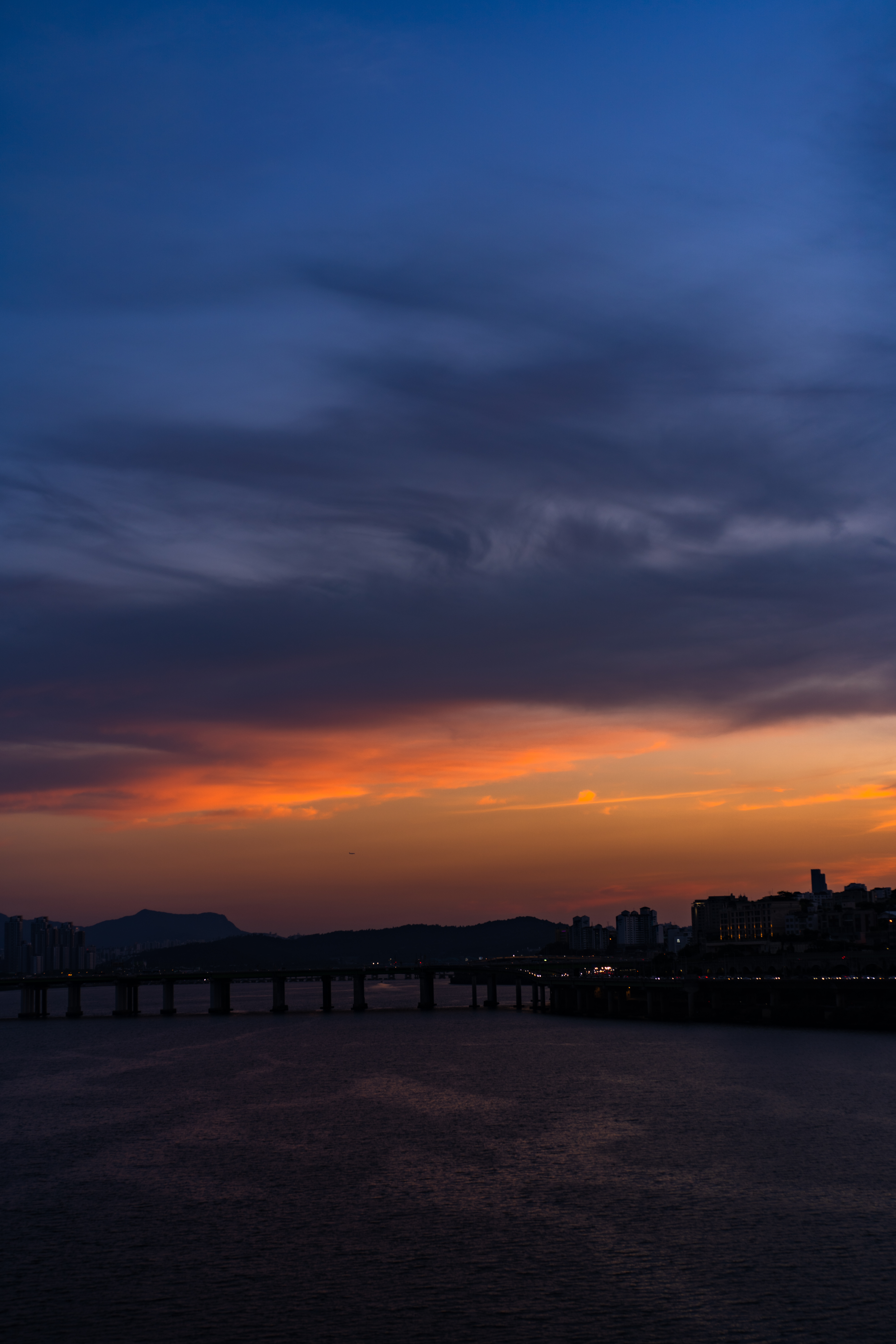 노을 쇼가 시작된 지 얼마 되지 않아 해는 도시의 스카이라인 너머로 사라졌고, 잔열과 남은 색들이 대기 위에 퍼졌습니다. 해넘이의 골든 타임은 해가 진 순간이 아니라 해가 사라지고 난 후라는 것을 그간 왜 몰랐을까요. 발길 돌리다 아쉬움에 다시 달려간 적이 한두번이 아닌데.