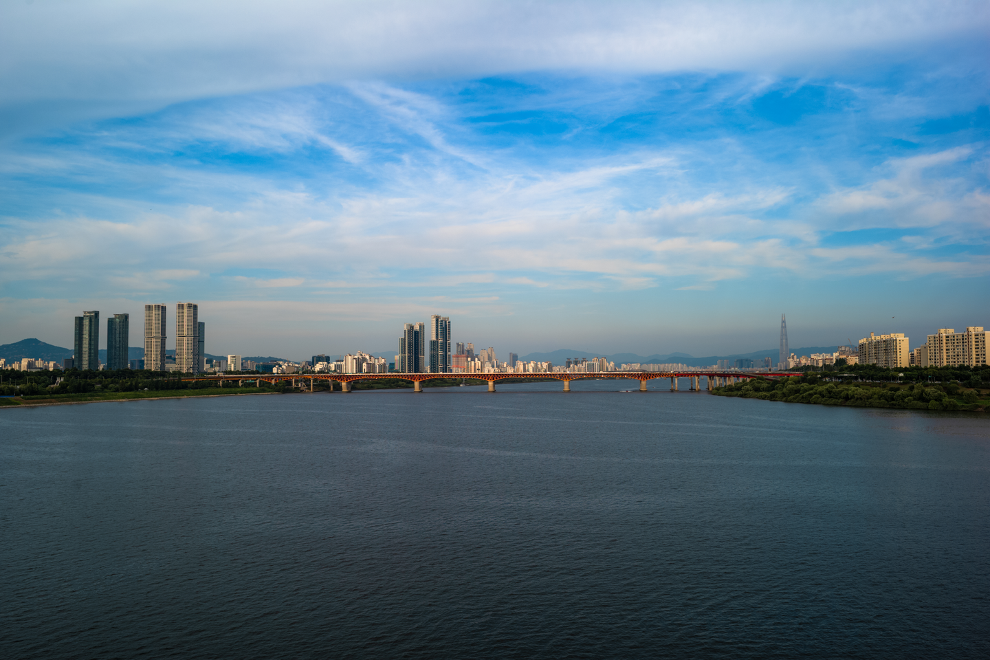 오랜만에 걸어서 건너보는 한강 대교 풍경. 강남으로 넘어가는 방면 왼쪽으로 탁 트인 풍경이 펼쳐집니다. 저 멀리 잠실 롯데타워도 흐릿하게나마 보이고요. 이렇게 쉬운 것을 왜 그동안 한강 공원의 무성한 수풀 뒤에서 발 동동 굴렀는지. 생각보다 일몰 시간이 늦어서 결국 걸어서 동호대교를 왕복했습니다. 이렇게 한강 다리를 걸어서 걸으면 낯선 곳을 여행하는 듯한 기분이 듭니다.