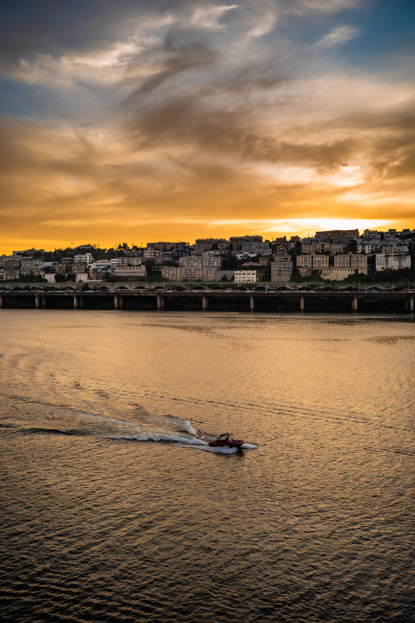그리고 이 절정의 시간에 강 위를 가르며 여름을 만끽하는 사람들의 모습까지. 2021년 여름에 많은 장면들을 봤지만 이 날 본 하늘과 다리 위, 강물 위의 모습들이 가장 많은 수로 기억될 것 같습니다. 요즘 서울 여행하며 느낀 것은 생각보다 한강 위에서 여가를 즐기는 분들이 많다는 것입니다. 패들 보드와 웨이크보드, 요트 등.