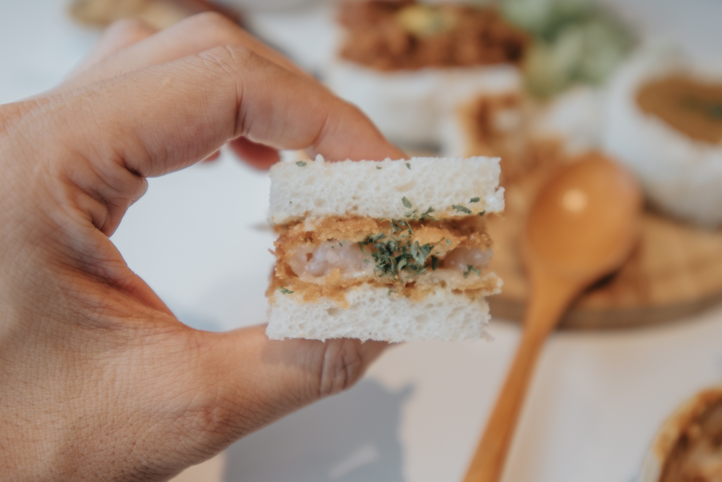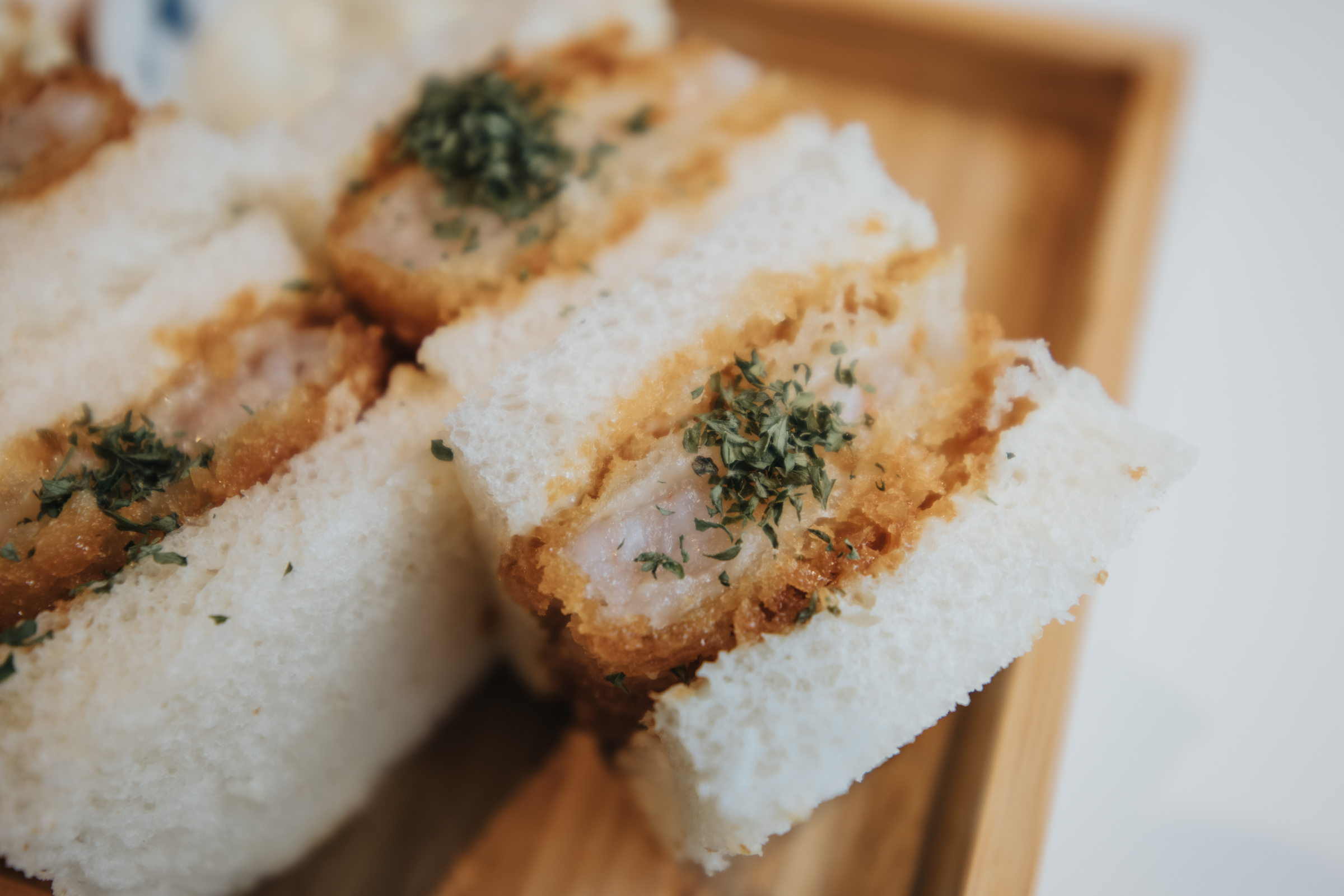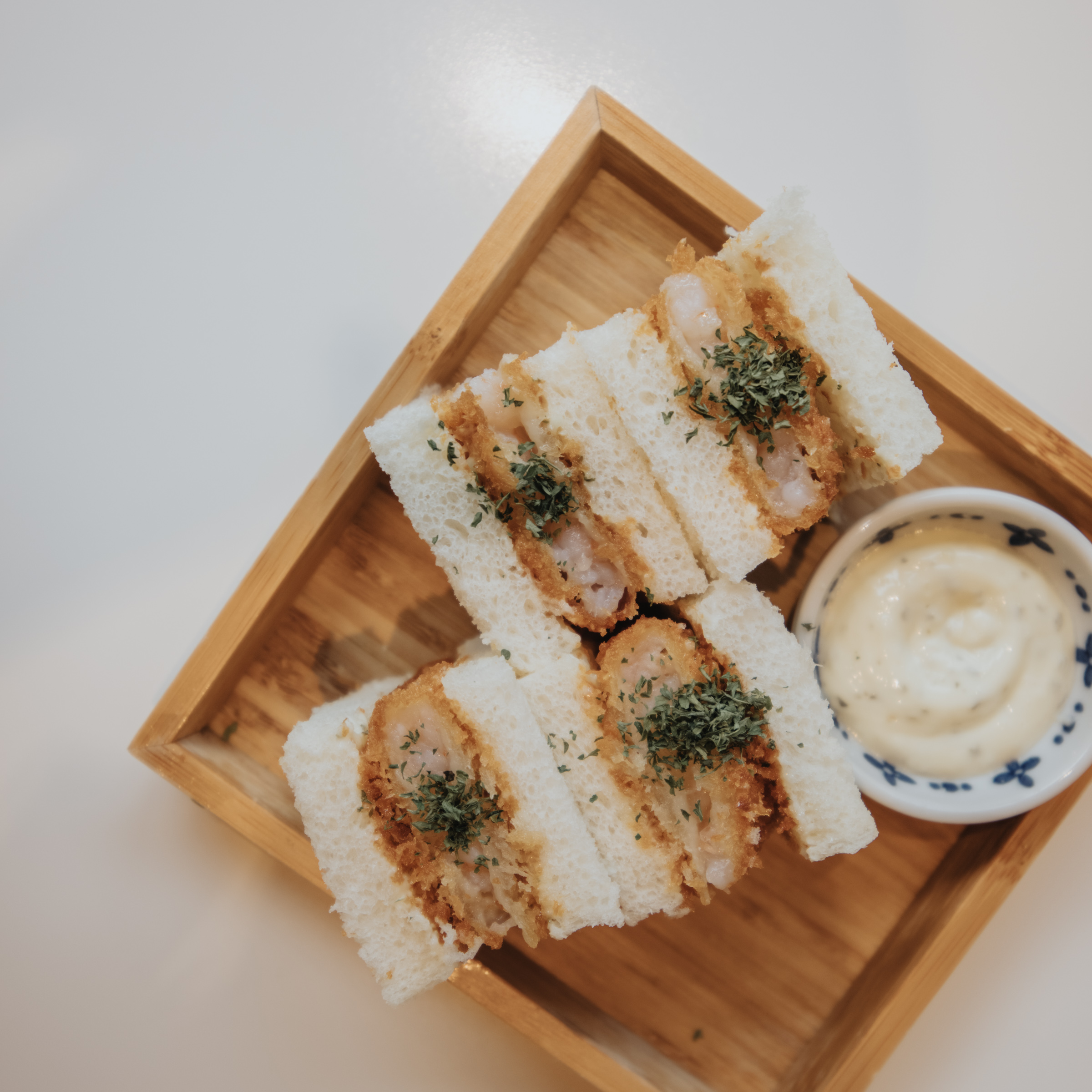 이 날 메인 메뉴보다 만족했던 사이드 메뉴. 카츠 샌드. 돈카츠가 아니라 새우살을 튀긴 에비카츠샌드였는데 빵과 튀긴 새우살의 조합이 멘보샤를 연상 시켰어요. 다만 맛은 제 취향에 전체를 튀긴 것보다 이쪽이 좀 더 좋더라고요. 네 조각에 5천원이면 가격 경쟁력도 충분한 것 같습니다.