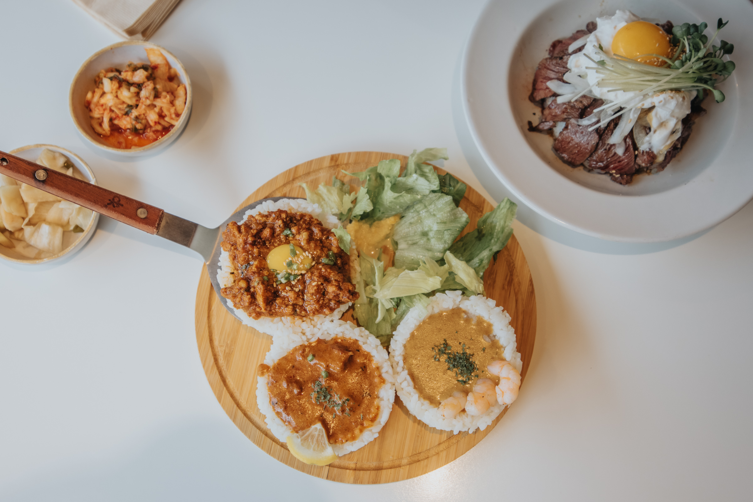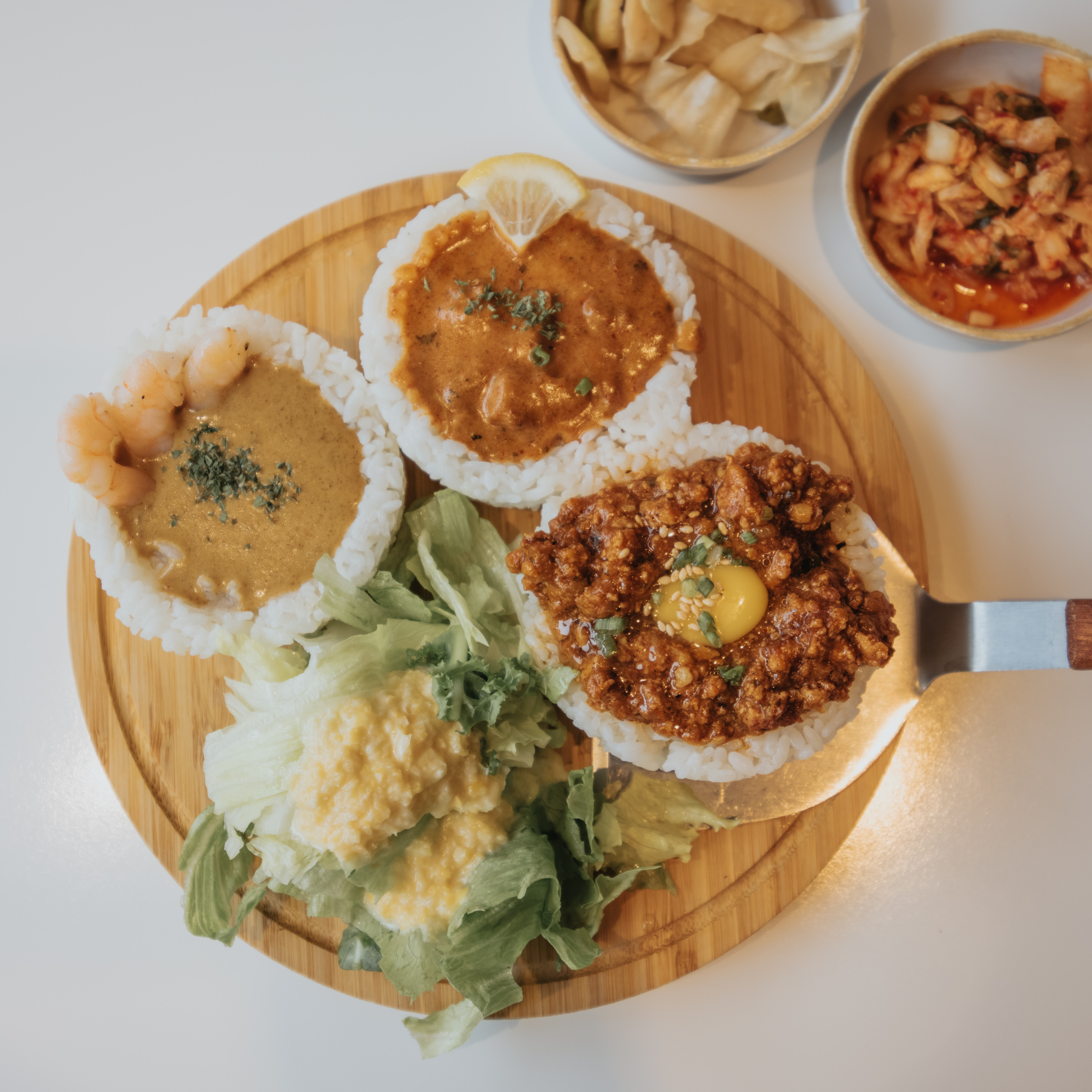 일행은 라구 소스와 비슷하다는 고기 카레를 가장 좋아했고 저는 그린 커리가 떠오르는 부드러운 맛의 에비 카레가 가장 마음에 들었습니다. 전반적으로 세 카레 다 맛이 좋아서 추가로 주문한 카레와 밥까지 남김 없이 깨끗하게 먹었습니다. 일본 가정식을 연상시키는 매장 분위기와 담음새와 달리 카레 맛은 코코넛 밀크 들어간 동남아의 그린 커리 느낌도 나는 것이 퓨전 커리의 느낌이었습니다. 치킨 카레도 코코넛 밀크 맛이 돌지만 매콤한 맛이 있어서 조금 더 자극적입니다.