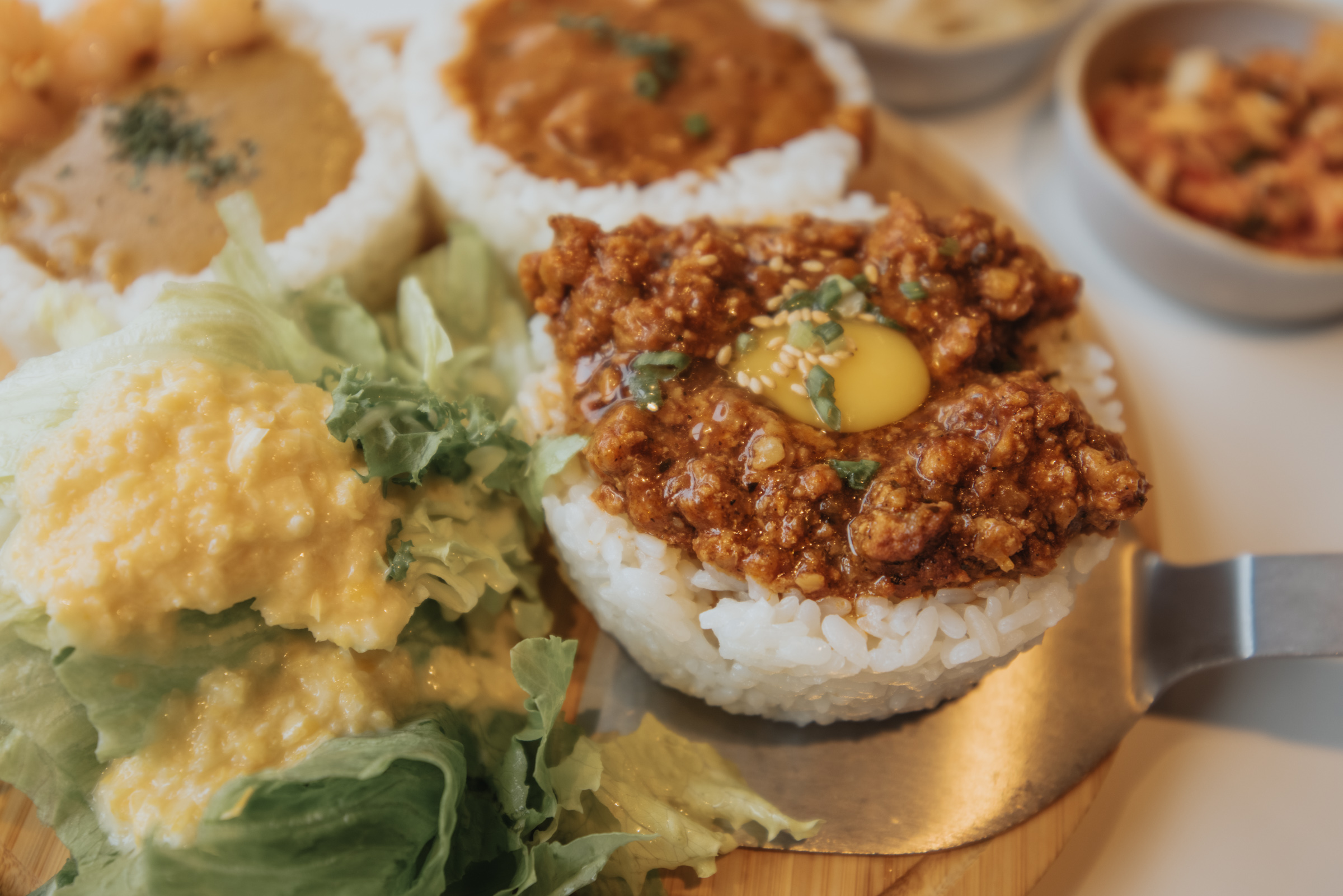 소코아 카레는 세 가지 카레를 한 번에 맛 볼 수 있는 메뉴입니다. 거기에 독특한 비주얼로 SNS 감성을 더했고요. 새우와 고기, 치킨 카레 세 종류가 나옵니다. 모양을 내느라 음식 양이 부족하게 느껴질 수 있는데, 밥과 카레는 추가 제공이 된다고 하네요. 그럼 안심하고 먹어야죠.