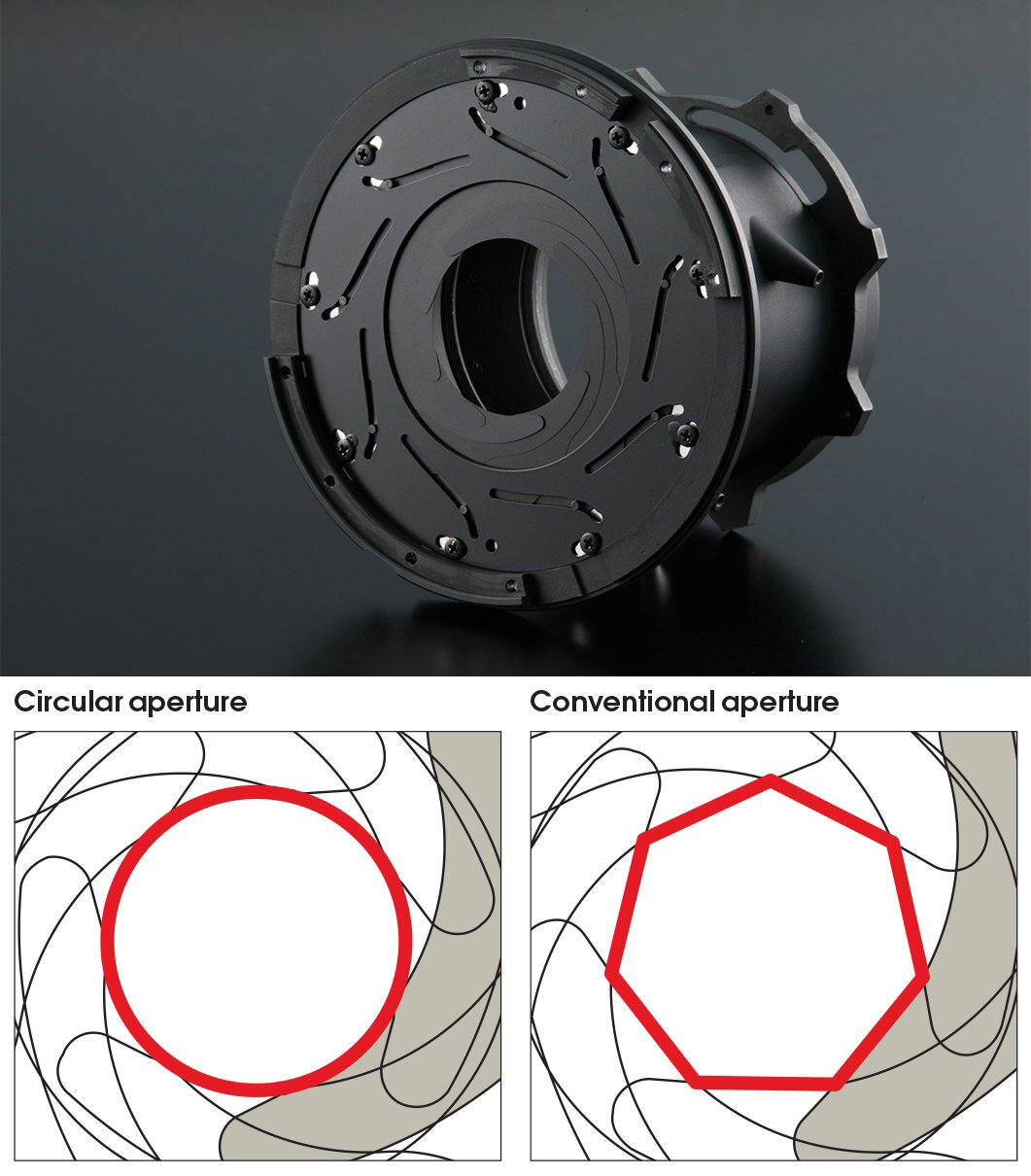 이런 독특한 형태의 조리개 날로 인해 조리개를 조였을 때의 모양이 기존 렌즈와 다르고 그것은 곧 보케 형태의 차이로 이어집니다. 보이그랜더가 이런 조리개 날 디자인을 채택한 것은 특정 조리개 값 촬영에서 완전한 원형의 조리개를 표현할 수 있도록 하기 위해서입니다. 원형 조리개를 탑재한 대부분의 렌즈에서 조리개 값이 높아질 수록 보케 형태가 다각형으로 변하는 것을 심심찮게 볼 수 있죠.