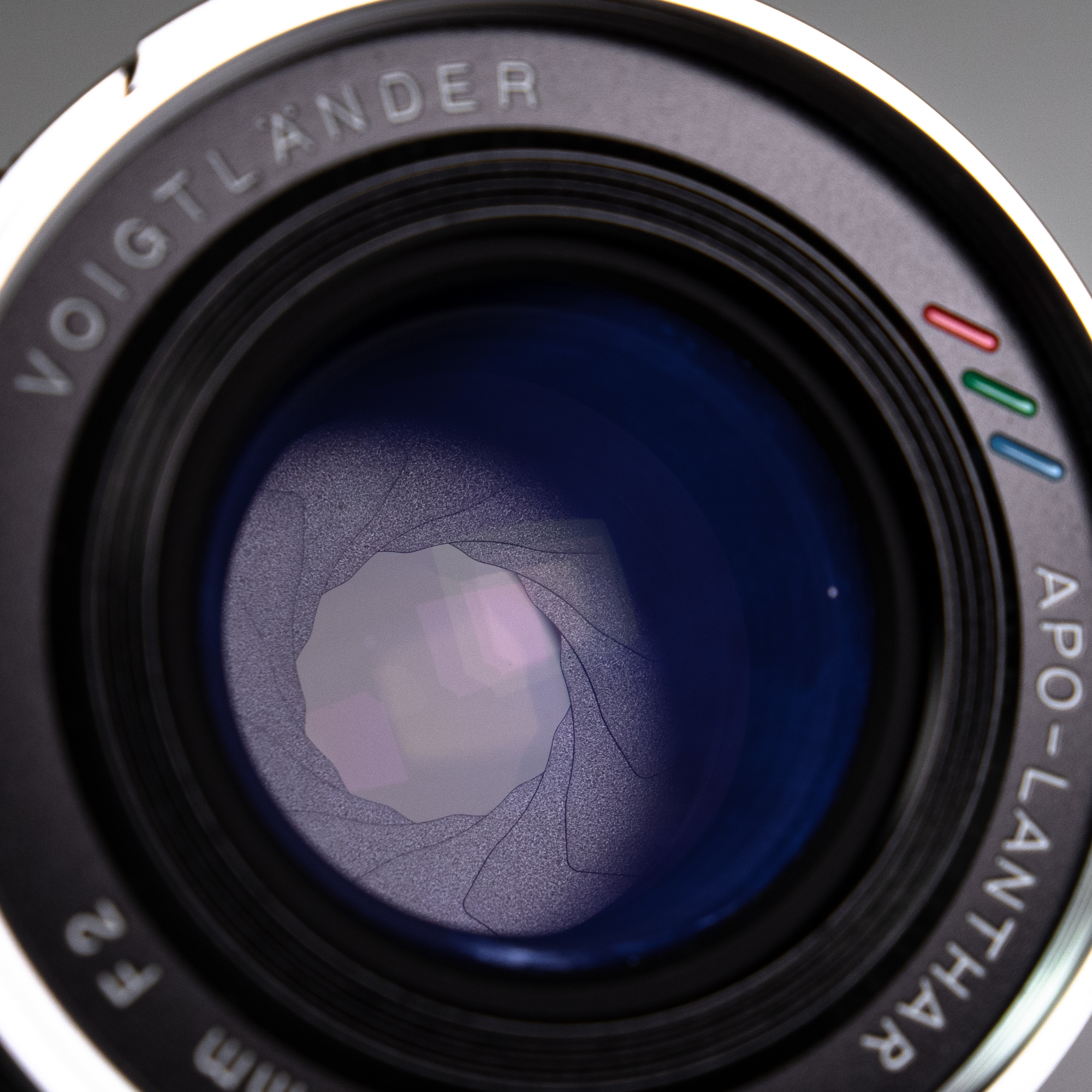 APO-LANTHAR 35mm F2 렌즈의 조리개는 총 12개의 날로 구성돼 있습니다. 원형 조리개라는 단순한 설명을 보고 그냥 지나치기 쉽지만 여기엔 재미있는 구조가 숨겨져 있는데요, 조리개 부분을 확대해 보면 일반적인 조리개 날의 형태와는 다른 것을 알 수 있습니다. 이는 APO-LANTHAR 35mm f2, 50mm f2 렌즈에 공통적으로 적용된 부분입니다.