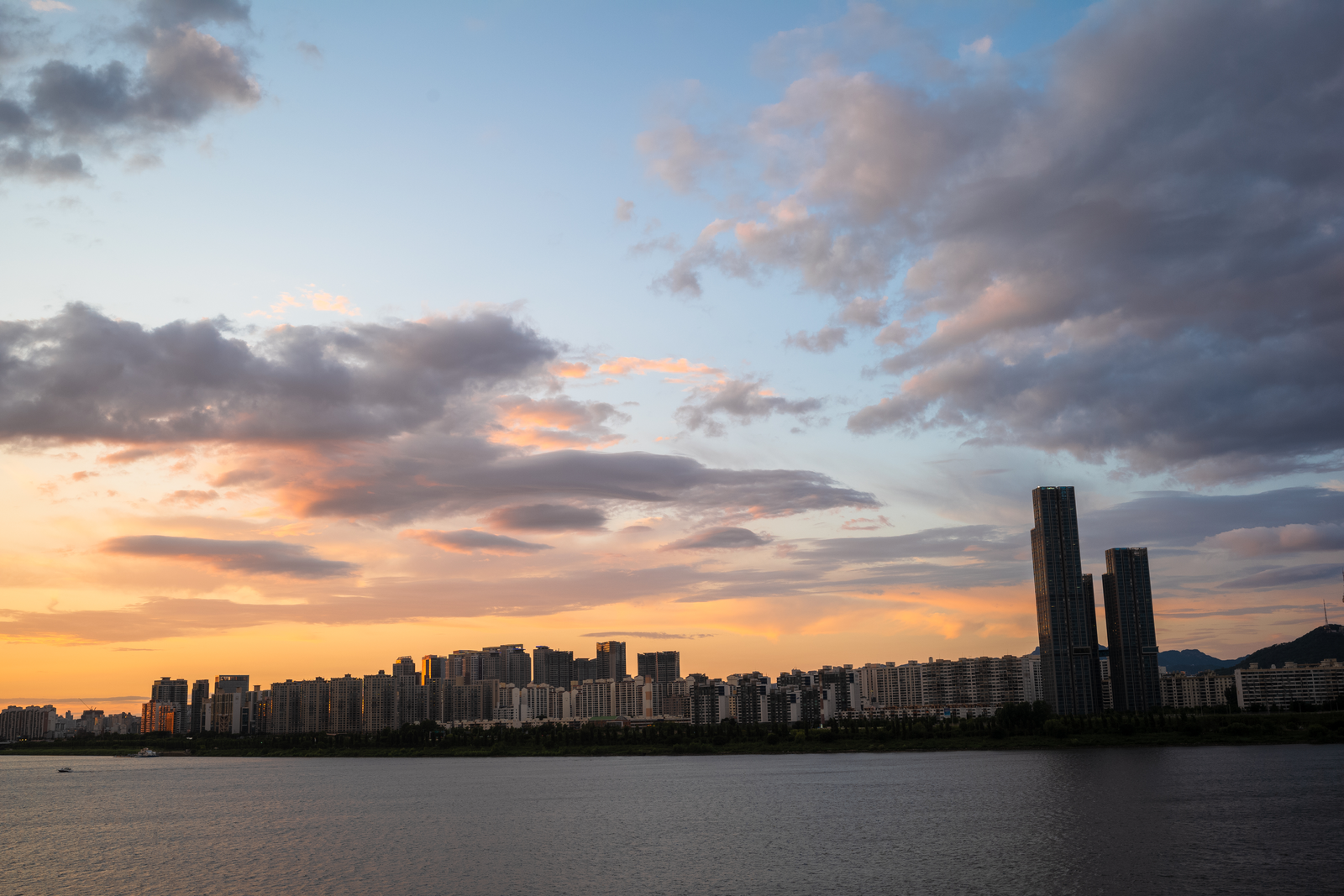 하늘의 색은 더 깊고 붉어지는 삼십여 분간 이어폰으로 좋아하는 노래를 들으며 여름날 야경을 감상하고, 사진으로 담았습니다. 이제 올해 노을은 이것으로 되었다 싶을만큼 드라마틱한 시간이었습니다.