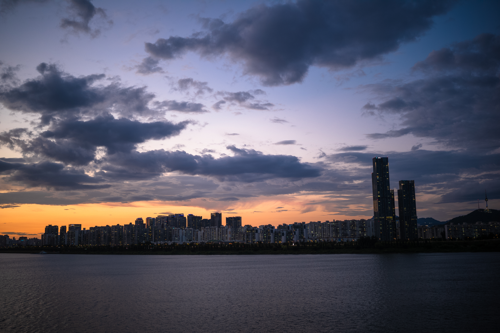 풍경이 어두워지자 건물과 가로등이 불을 밝혀 운치를 더하는 모습. 이런 장면을 보면 대도시에 사는 것도 꽤 괜찮은 일이라는 생각이 들어요. 갑갑하게 느껴질 때가 많지만.