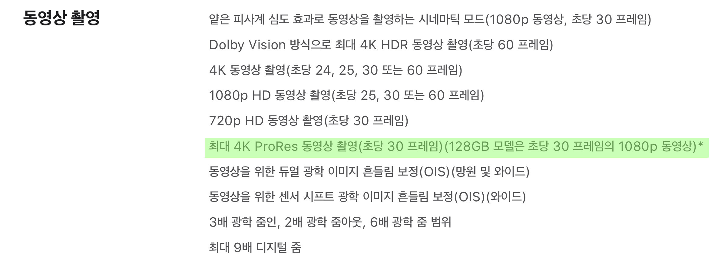 ProRes 동영상 촬영