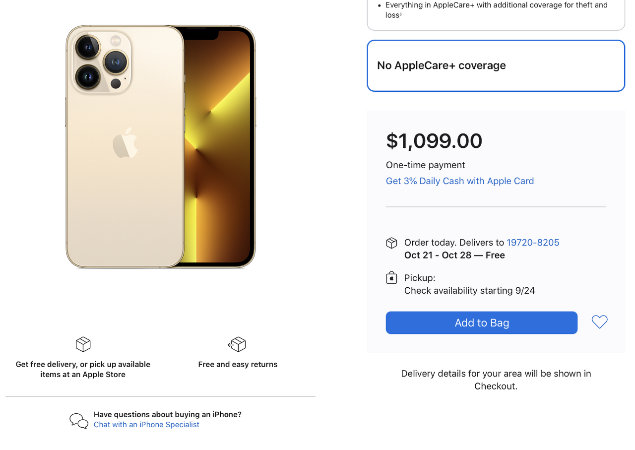 추석 연휴 직전인 9월 17일 금요일 밤, 새로운 아이폰 13 프로를 주문했습니다. 미국 홈페이지를 통한 직구입니다. 가격에선 별 메리트가 없지만 카메라 셔터음이 없는 것과 정발보다 다만 며칠이