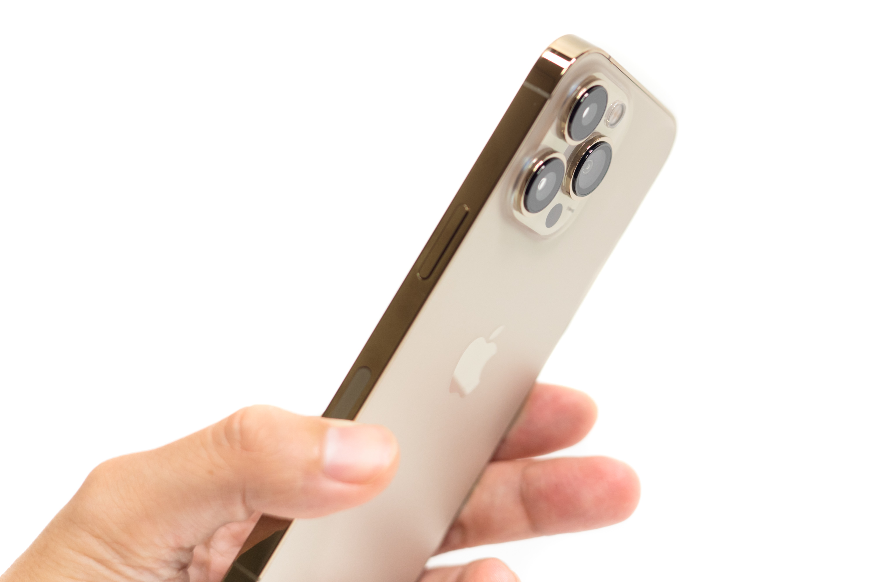 옆면 프레임을 아이폰 4가 연상되는 직선 프레임으로 바꾸면서 유광 스테인리스 소재를 채용했습니다. 일반 아이폰 13, 13 미니 모델은 이 부분이 알루미늄으로 되어 있죠. 애플 워치가 보급형 모델에 알루미늄 케이스를, 고급 모델에 스테인리스 스틸 케이스를 사용하는 것과 비슷한 전략입니다. 다만 너무나도 반짝이는 유광이 제 취향에는 영 아니라서 디자인 만족도는 아이폰 11 프로보다 떨어집니다.
