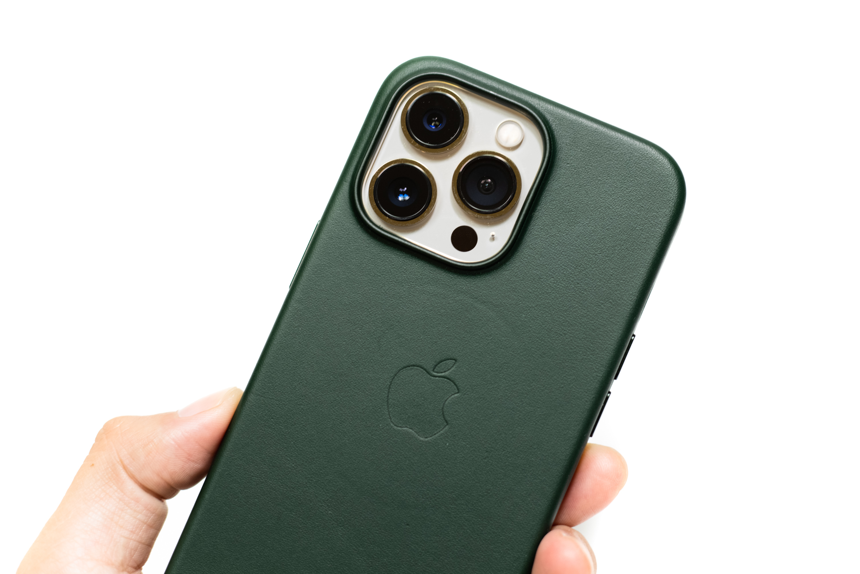 케이스를 장착한 모습. 안 그래도 크고 무거운 아이폰 13 프로가 더 크고 두꺼워집니다. 이 정도면 한 손으로 사용할 수 있는 크기의 한계가 아닐까 싶어집니다. 정품 케이스의 핏이야 늘 그렇듯 완벽하고 천연 가죽의 감촉 역시 실리콘이나 플라스틱 소재보다는 훨씬 좋습니다.
