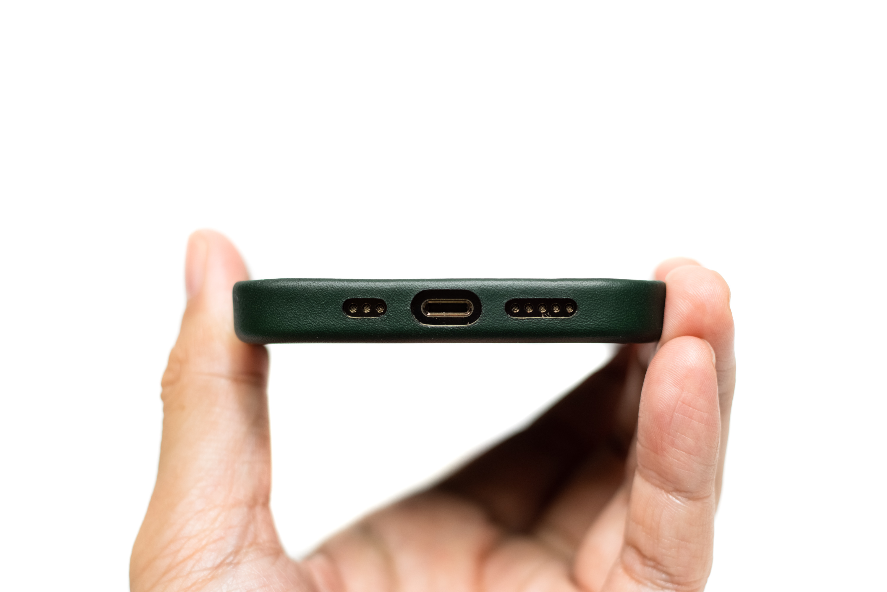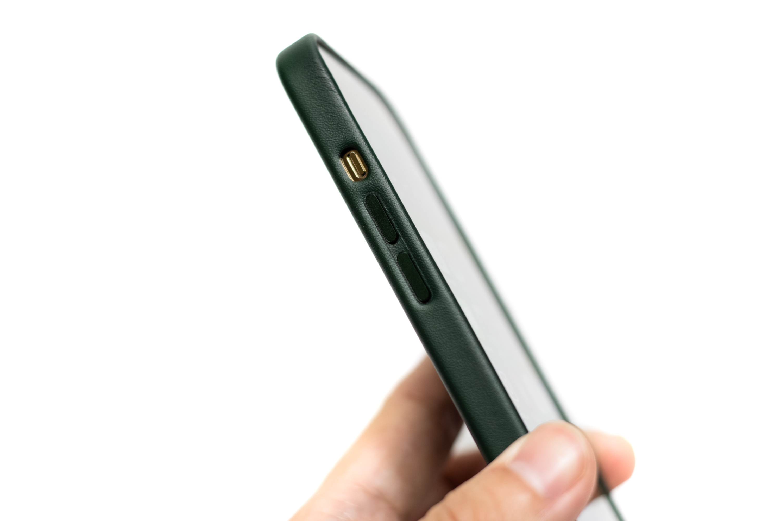 가죽의 색상은 애플 홈페이지에 있는 것보다는 조금 밝게 느껴집니다. 일반적인 진녹색에 가까운데 이전 시즌에 발매된 포레스트 그린 컬러보다 한 톤 밝은 컬러로 보이네요. 녹색 좋아하시는 분들은 다들 좋아하실 색상이고 실버/골드 아이폰과 잘 어울릴 것 같아요. 기본적으로 진한 녹색이라 그래파이트 모델과도 무리없을 것 같습니다.