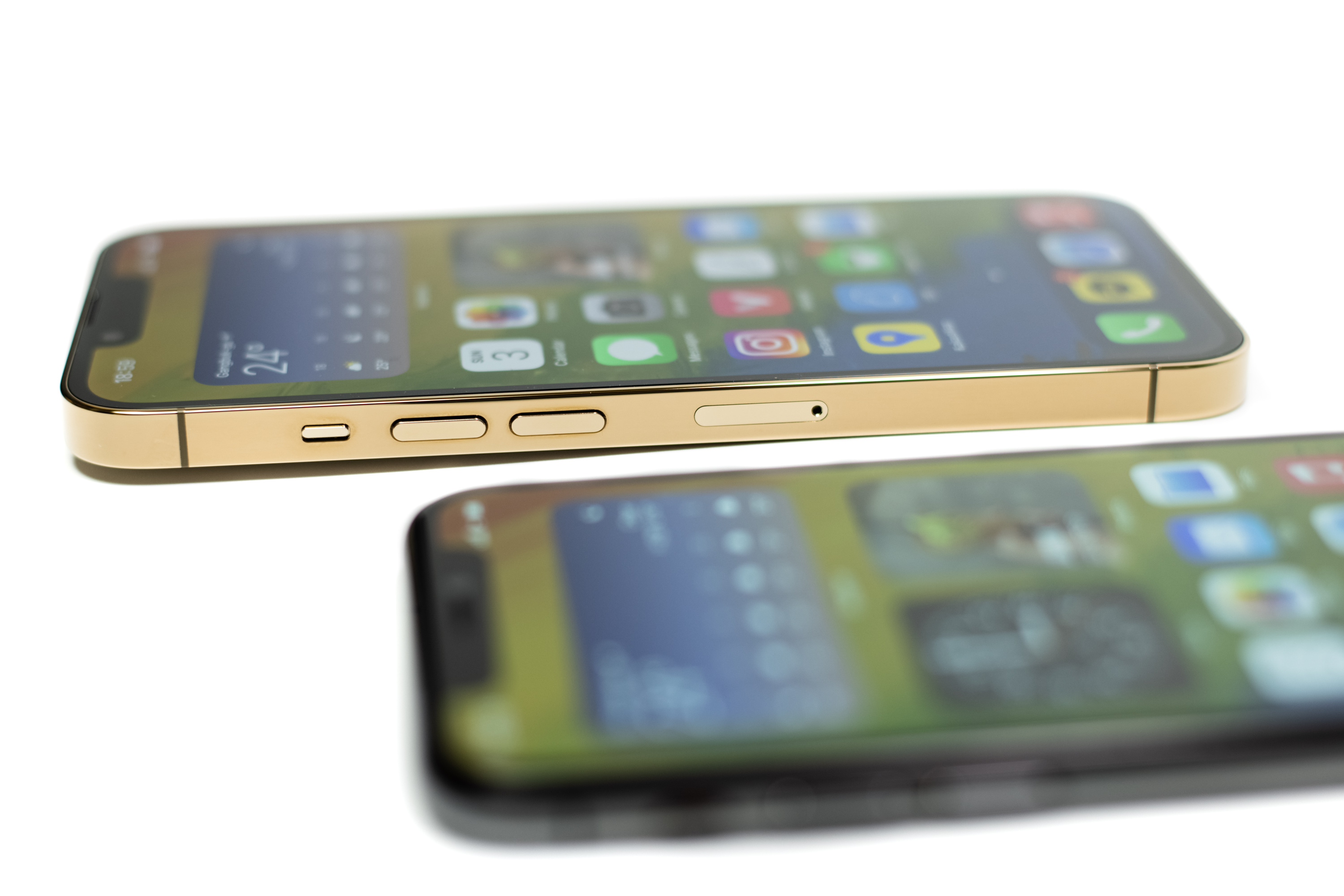 크기뿐 아니라 돌출되는 정도도 크게 차이 납니다. 아이폰 11 프로 역시 2단 인덕션이라 놀림을 받았는데 13 프로와 비교하니 납작하게 느껴집니다. 이만큼 크기를 키운 값을 할지는 앞으로 알게 되겠죠. 카메라를 많이 사용하는 터라 결과물만 좋다면 이 커다란 카메라를 예쁘게 봐 줄 수 있습니다.