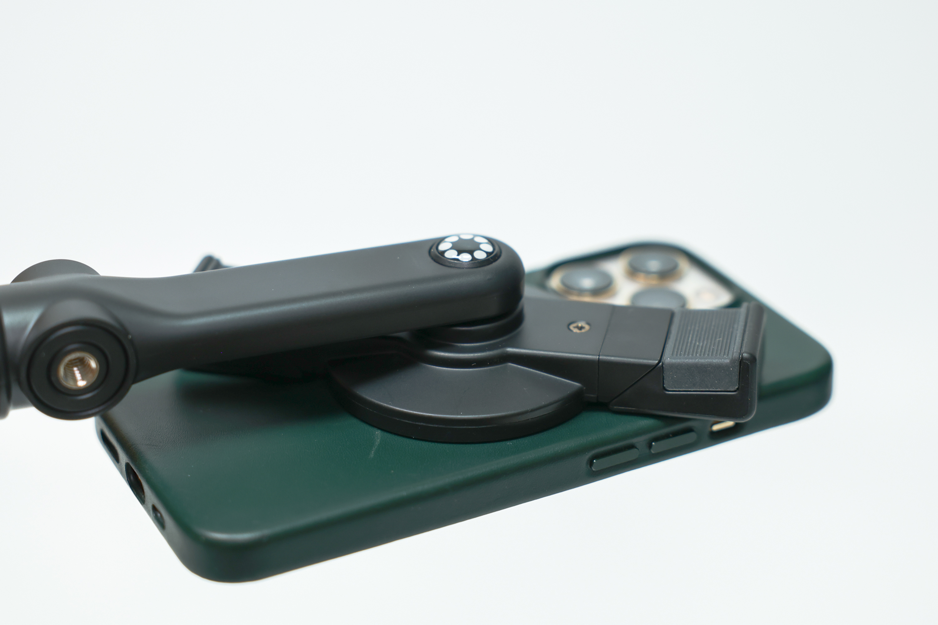 삼각대를 들고 달리거나 빠르게 움직일 때 맥세이프 자석 결합만으로는 충분한 고정력을 담보할 수 없을 수 있습니다. 이럴 때 그립을 사용해 2중으로 고정할 수 있도록 했습니다. 맥세이프를 지원하지 않는 아이폰, 안드로이드폰을 사용할 때도 이 그립이 사용됩니다. 맥세이프 거치대 양쪽의 그립을 회전하면 익숙한 형태의 그립이 됩니다.