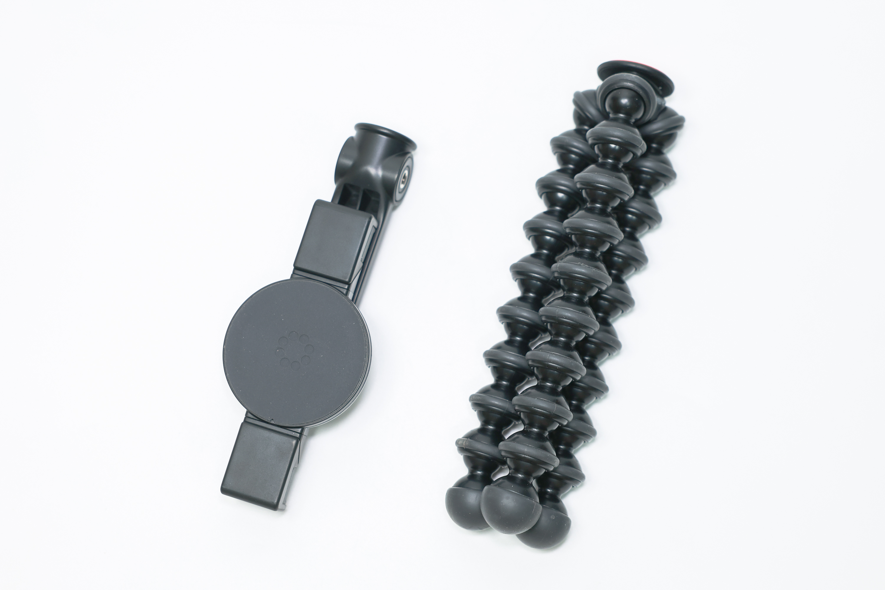 코만 삼각대는 디지털 카메라와 스마트폰 거치를 겸용할 수 있는 형태로 제작됐습니다. 플레이트 바깥쪽을 잡아당기면 사진에 보이는 것처럼 그립 형태로 변하는데 다기능을 수행하는 것은 영리하지만 아무래도 두께와 소재가 단단해보이진 않습니다. 그립 타이트 고릴라포드의 거치대는 스마트폰 그리고 맥세이프에 최적화되어 있습니다. 다리를 조절할 수 있는 자유로움도 고릴라포드의 관절 방식이 우월하게 느껴집니다.