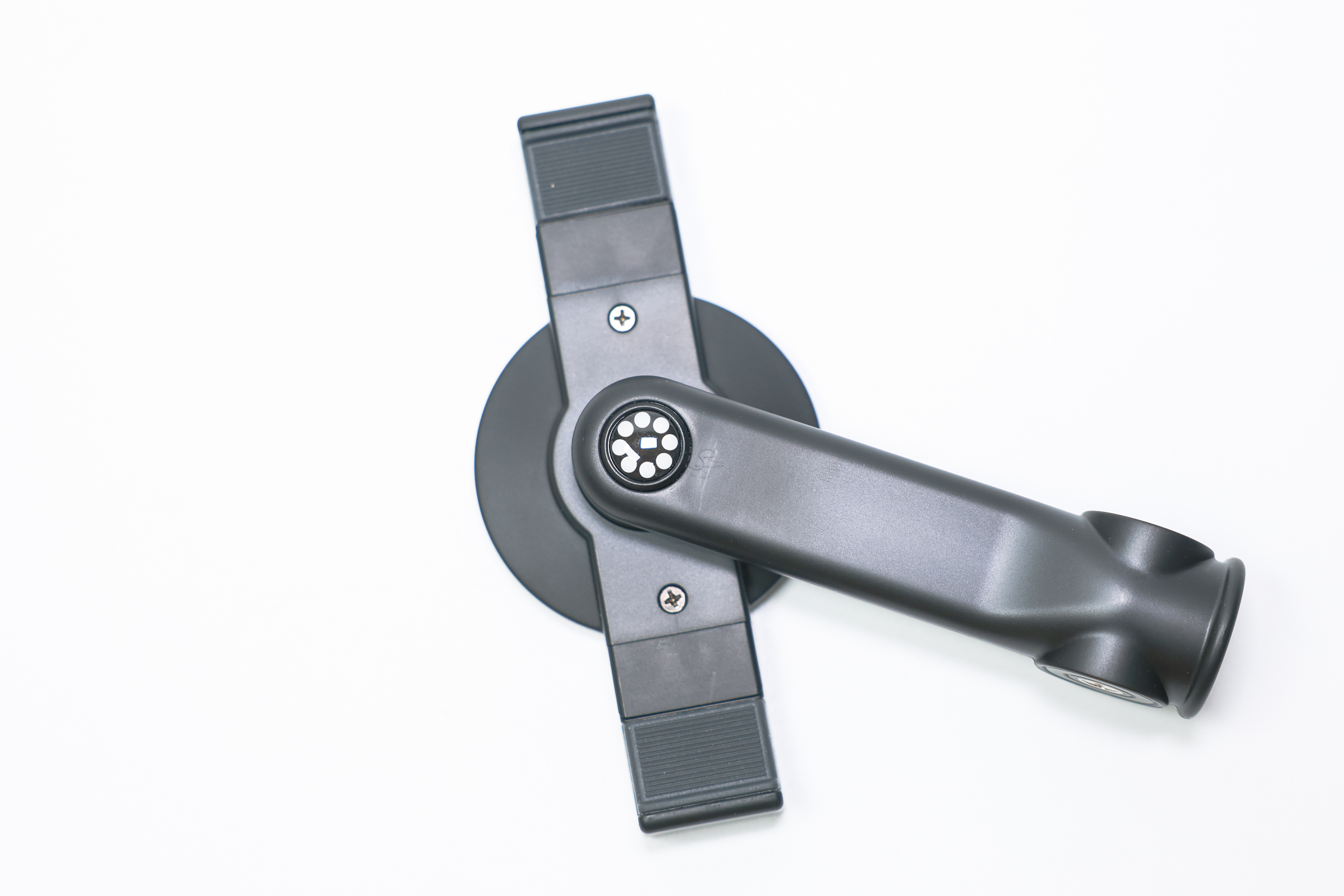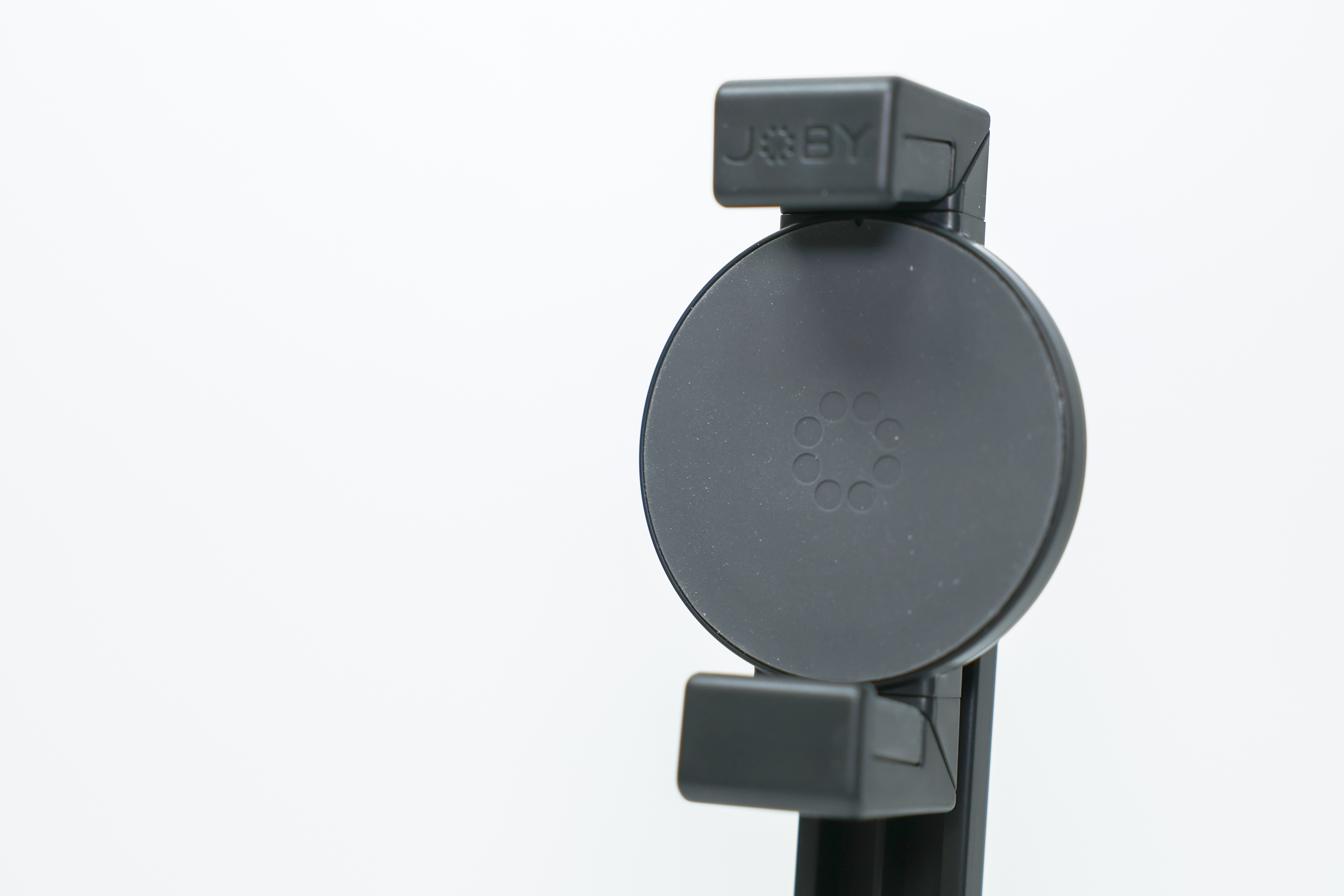 거치대는 부착 부위가 원형으로 되어 있습니다. 부착시 스마트폰 손상을 막고 미끄러짐을 방지하기 위해 표면에 고무 소재를 덧댄 것이 특징입니다. 상/하로 뻗은 직선의 플라스틱 그립은 맥세이프를 지원하지 않는 스마트폰을 결합할 때 사용합니다.