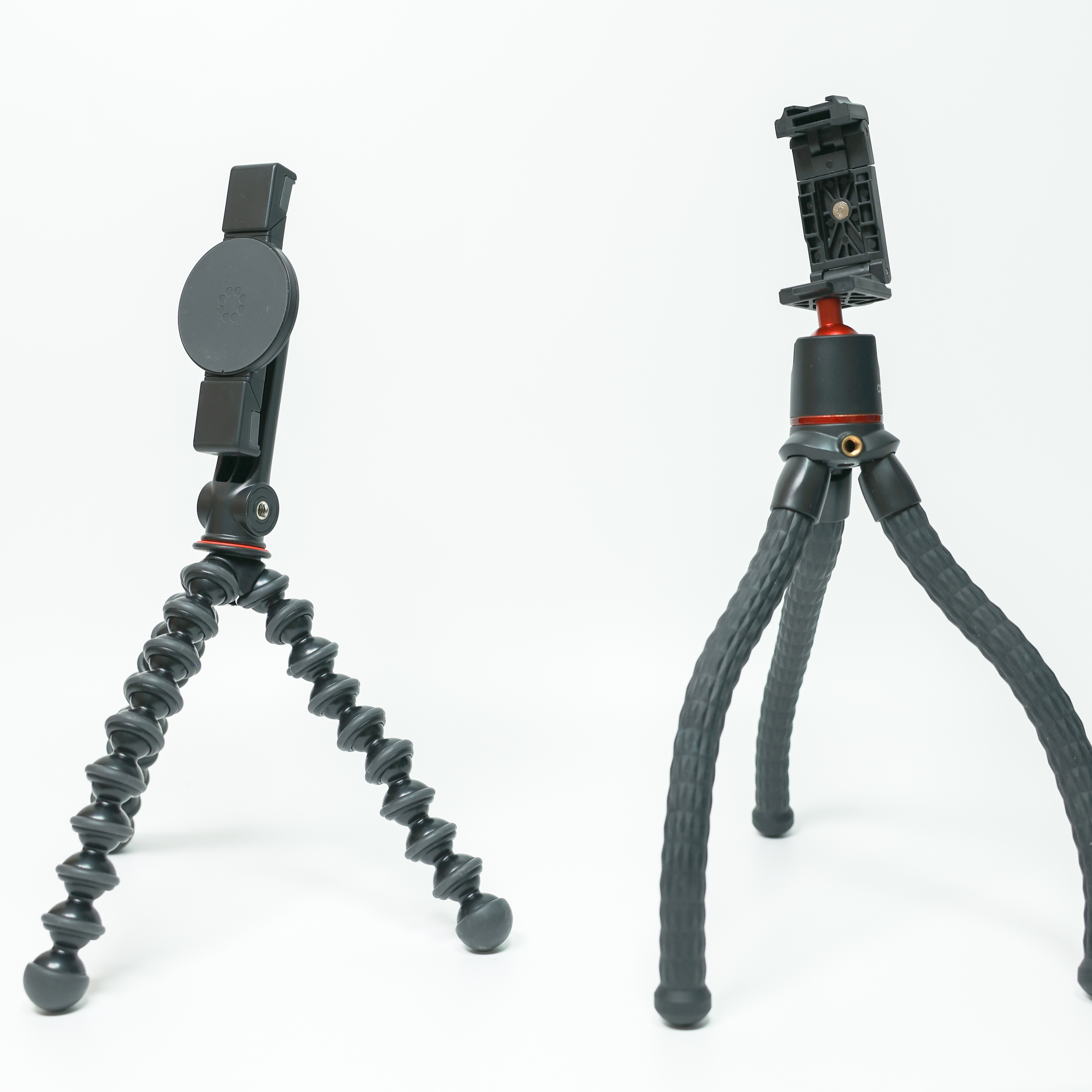 사용 중인 스마트폰 삼각대 코만 MT35와의 비교입니다. 양쪽 모두 유연하게 다리 형태를 변경할 수 있는 구조를 채택했지만 방식의 차이가 있습니다. 더불어 전체 크기와 무게에도 차이가 있습니다. 가장 큰 차이는 맥세이프 부착과 일반 그립 고정 방식이겠죠.