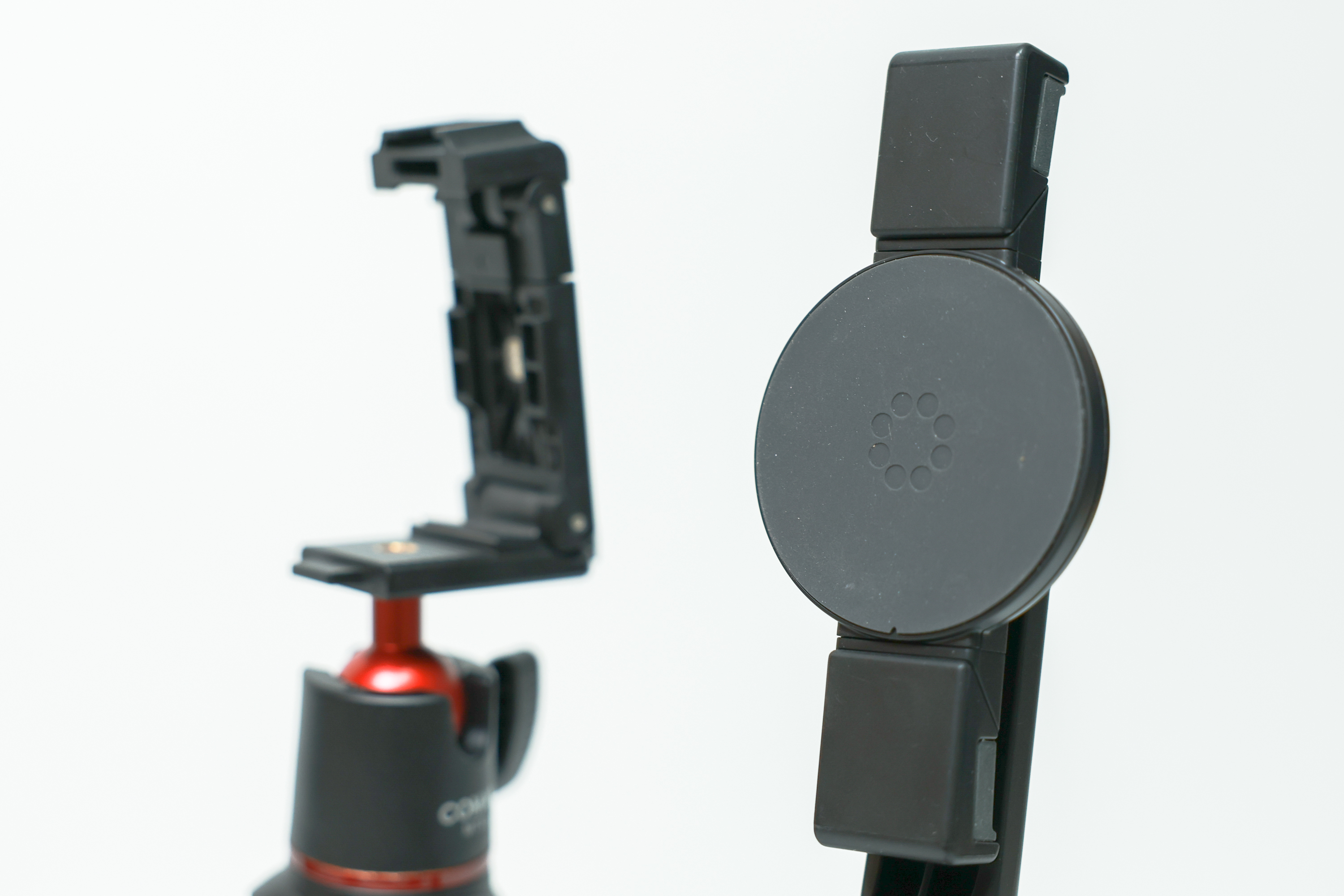 코만 삼각대는 디지털 카메라와 스마트폰 거치를 겸용할 수 있는 형태로 제작됐습니다. 플레이트 바깥쪽을 잡아당기면 사진에 보이는 것처럼 그립 형태로 변하는데 다기능을 수행하는 것은 영리하지만 아무래도 두께와 소재가 단단해보이진 않습니다. 그립 타이트 고릴라포드의 거치대는 스마트폰 그리고 맥세이프에 최적화되어 있습니다. 다리를 조절할 수 있는 자유로움도 고릴라포드의 관절 방식이 우월하게 느껴집니다.