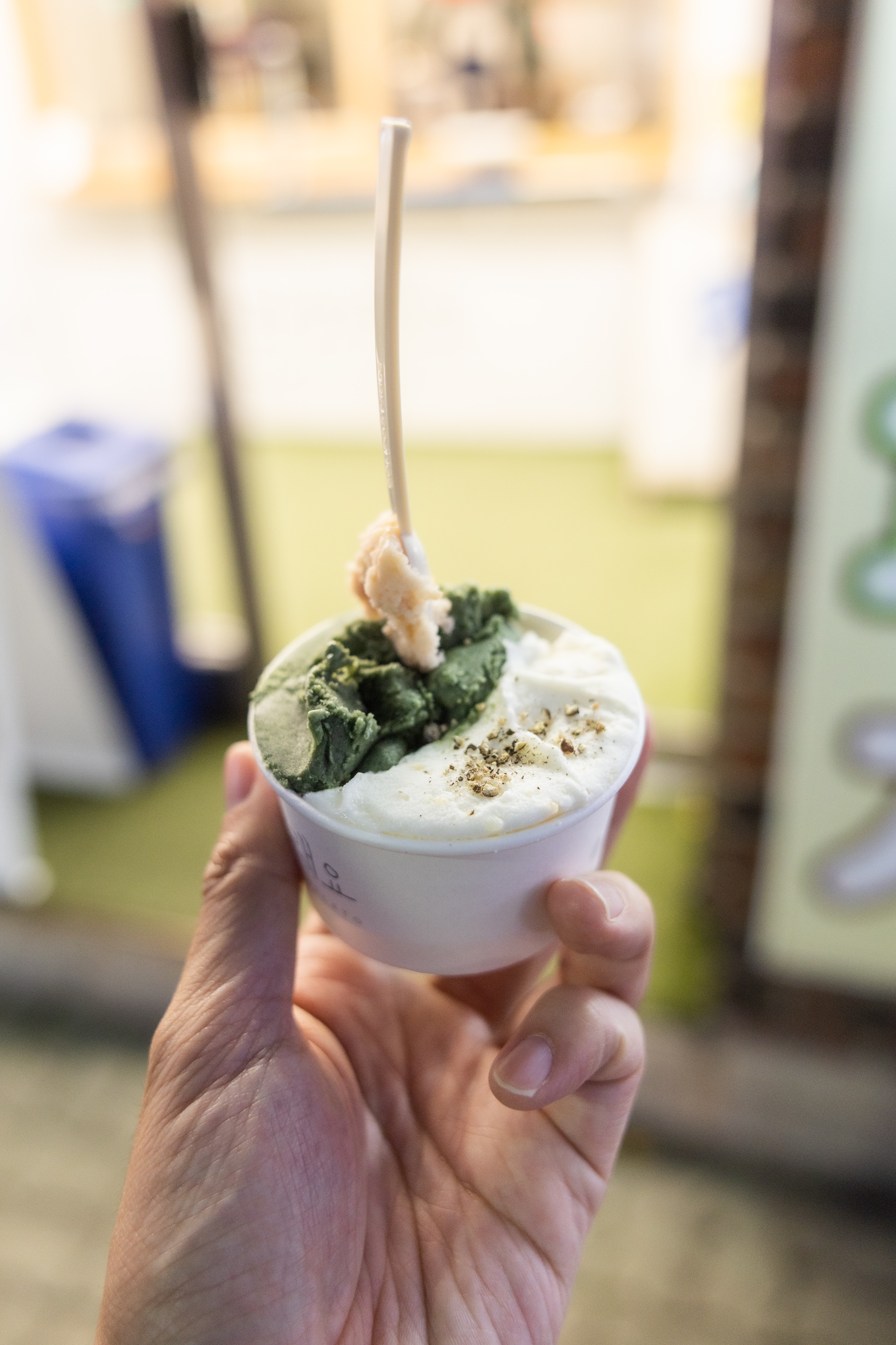 이중에서 감자 젤라또가 특이해서 주문을 해봤습니다. 그리고 설악 젤라또와의 비교를 위해 쑥도 같이 주문. 감자 젤라또는 재미있게도 후추가 올라갑니다. 마치 으깬 감자를 먹는 것처럼 말이죠. 그것도 즉석에서 그라인더로 갈아서 얹어 줍니다. 실제로 젤라또에서 삶아서 으깬 감자를 먹는 듯한 식감과 맛을 느낄 수 있습니다. 일반적으로 생각하는 달콤한 디저트와는 완전히 달라요. 정말로 후추가 잘 어울리기도 하고요. 다른 곳에서 쉽게 맛 볼 수 없는 이곳의 메뉴라 추천합니다.