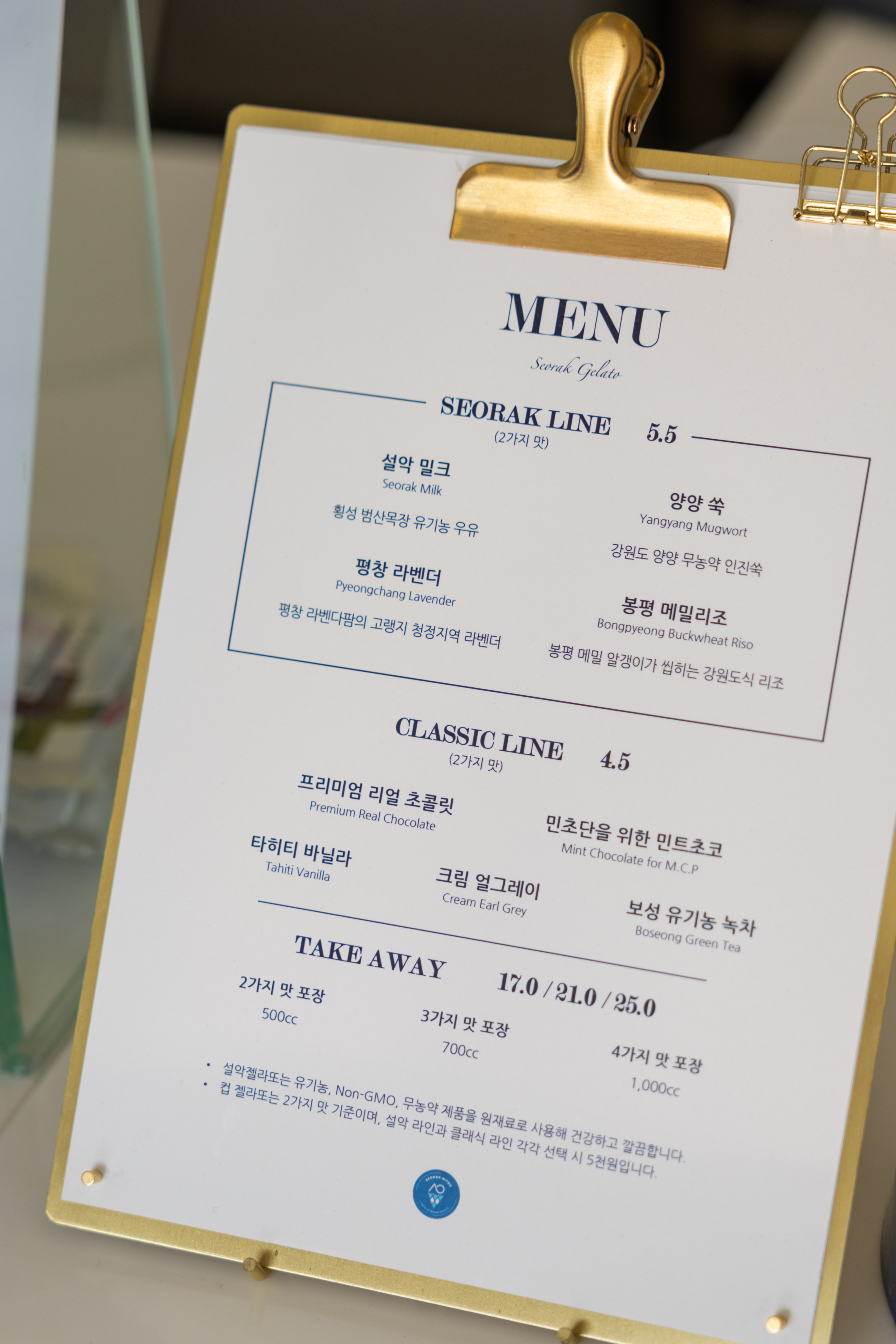 초콜릿과 민트초코, 얼그레이 등 트렌디한 메뉴들을 클래식 라인에 배치하고 이곳을 찾아오는 사람들의 보상심리를 채워 줄 메뉴들을 설악 라인으로 마련한 것이 눈에 띕니다. 더해보니 종류가 꽤 많죠. 우유, 쑥, 라벤더, 쌀 네가지 재료가 완전히 새롭지는 않지만 설악, 양양, 봉평, 평창으로 지역명이 붙으니 궁금해집니다.