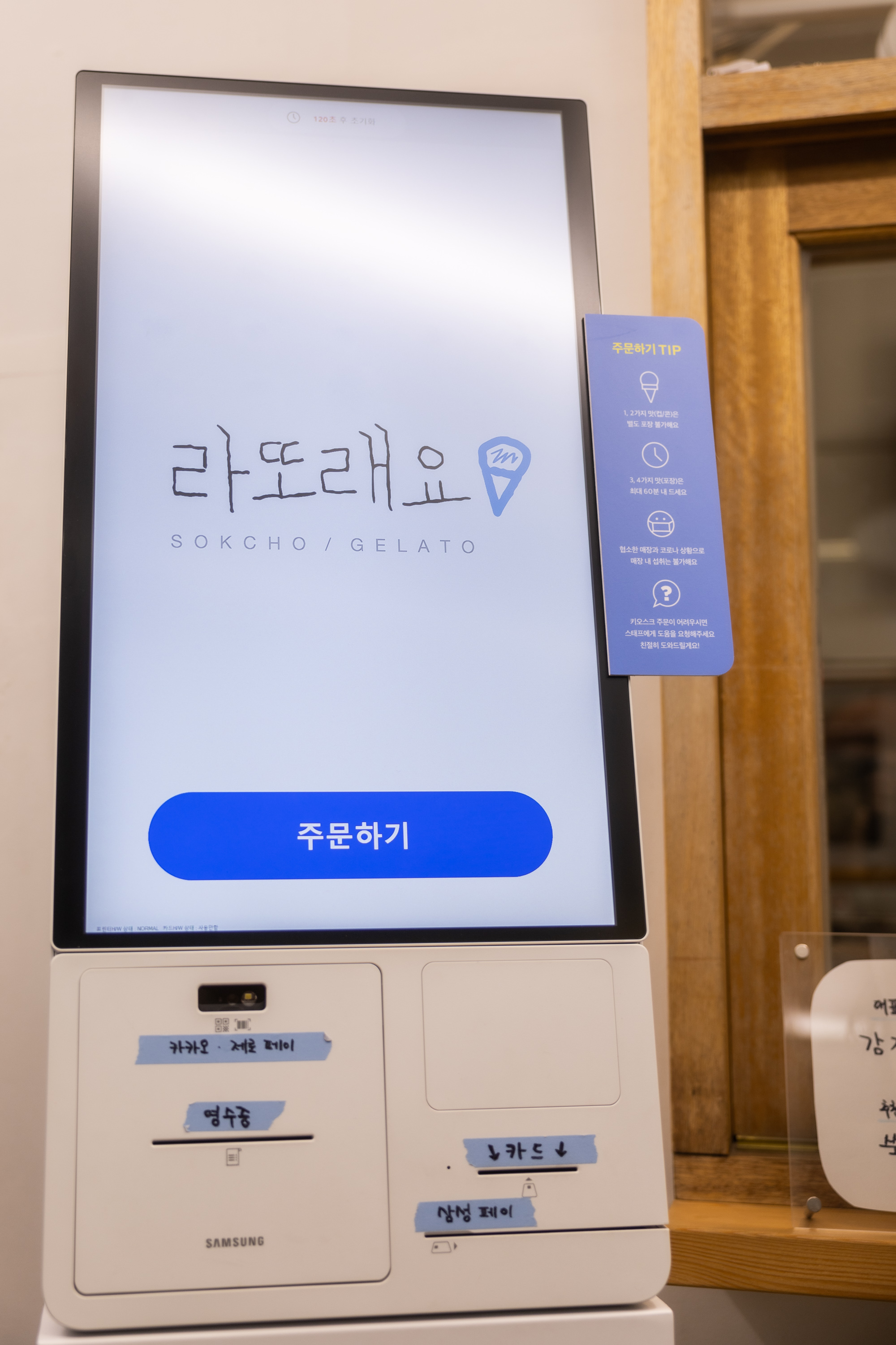 바닷가 근처에 있는 라또래요. 강원도 사투리를 연상 시키는 재미있는 이름이 인상적입니다. 생각할 수록 이름을 참 잘 지었습니다. 두어 팀 들어갈 수 있는 크기에 키오스크로 운영되는 곳입니다. 하지만 밖에 줄이 늘어설 정도로 인기가 있더라고요. 주요 메뉴 역시 강원도 느낌 물씬 나는 것들로 구성됐습니다. 감자, 토종다래, 쑥, 블루베리, 초코, 속초커피, 피스타치오.