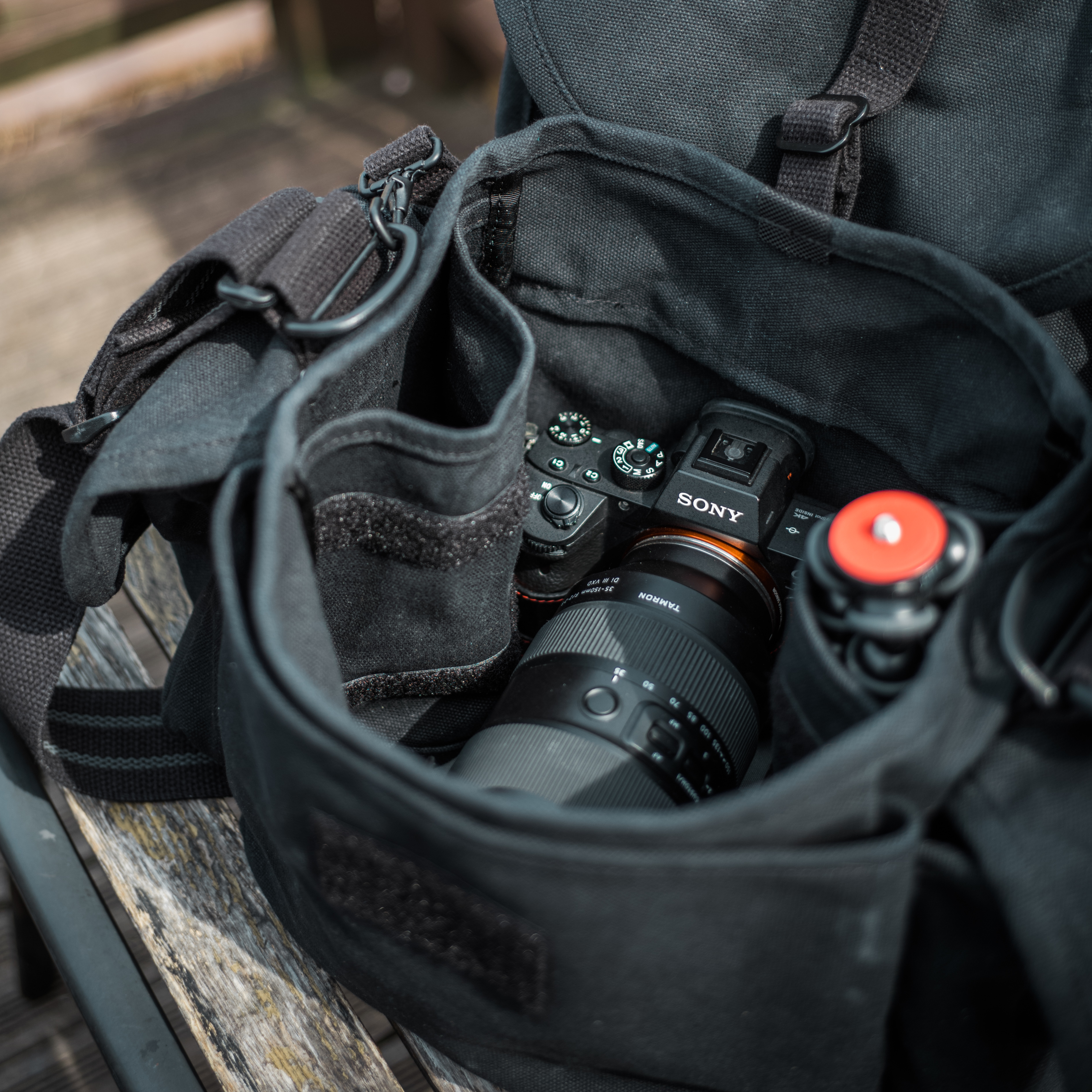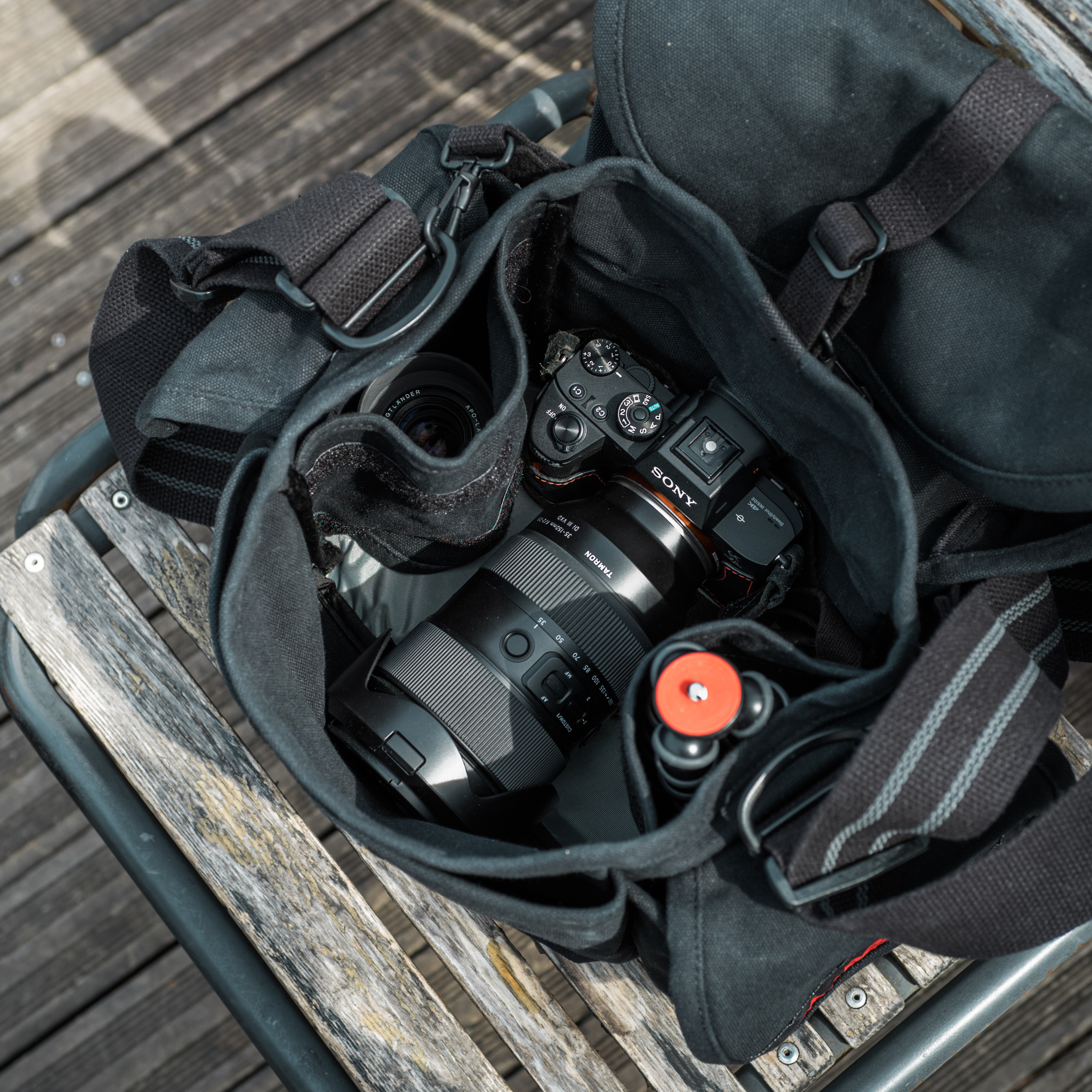 무엇보다 가방 크기 대비 많은 장비를 수납할 수 있는 것이 마음에 들었습니다. 다양한 크기의 보조 포켓, 미끄럼 방지 처리가 된 스트랩에서는 오랫동안 사진가들과 함께 한 돔케의 노하우를 느낄 수 있었고요. 아쉬운 점은 소재 특성상 가방 무게가 다소 무거운 것을 꼽겠습니다. 이미 낡아 있는 듯한 캔버스 특유의 질감과 디자인은 호불호가 나뉠 것 같네요.