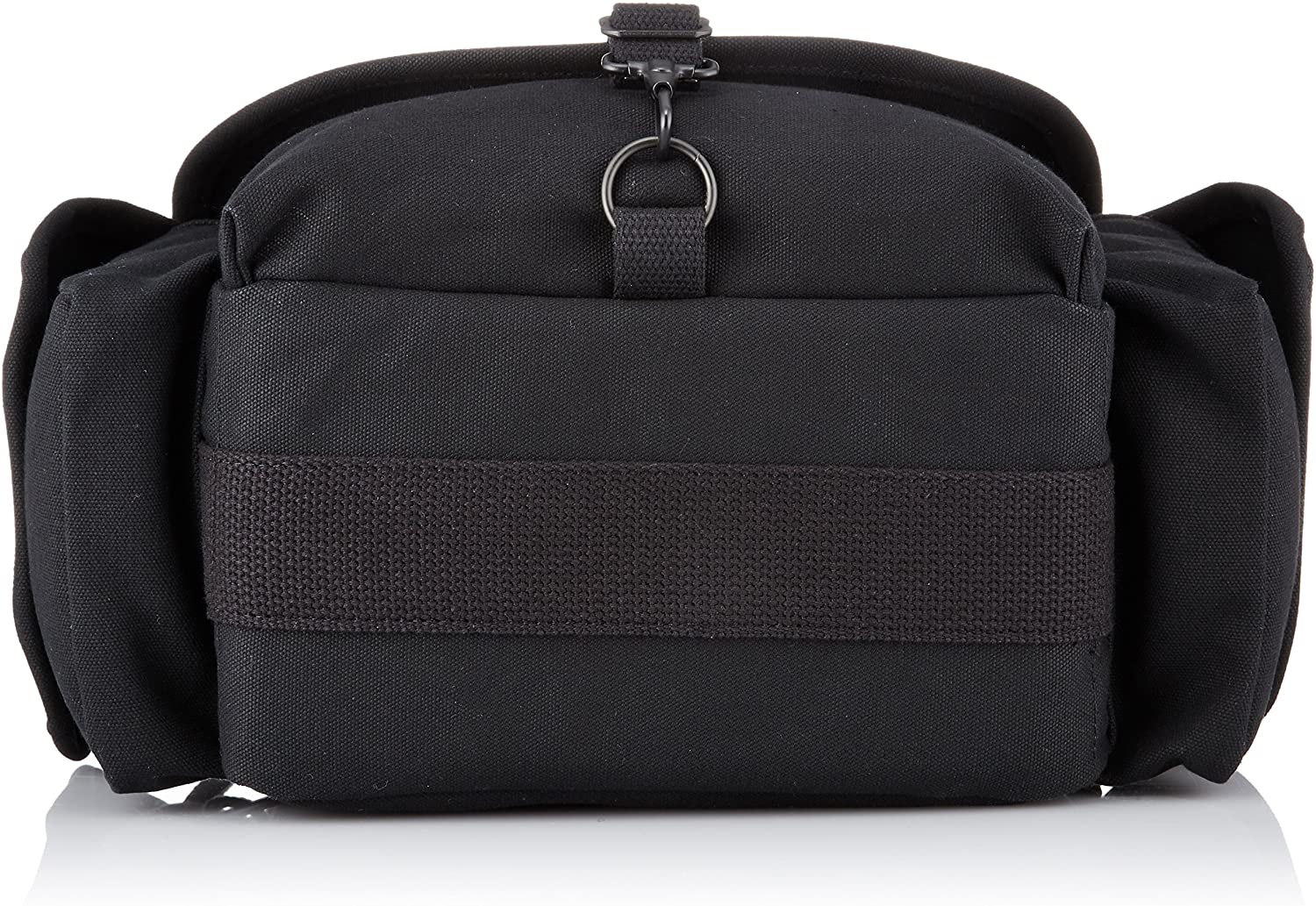 내부 파티션이 있는 메인 공간에 장비를 수납하고 덮개와 메탈 소재의 고리로 보호하는 전형적인 카메라 가방의 형태입니다. 양쪽 포켓과 뒷쪽 포켓 등 다양한 추가 수납 공간을 제공하는 것 역시 카메라 가방의 특징이죠. 전체 길이가 38cm로 짧은 편이 아니지만 높이가 F-2 수준으로 높아 정사각형에 가깝게 보입니다. 바닥엔 스트랩과 같은 웨빙 소재를 덧대 내구성을 높였습니다.