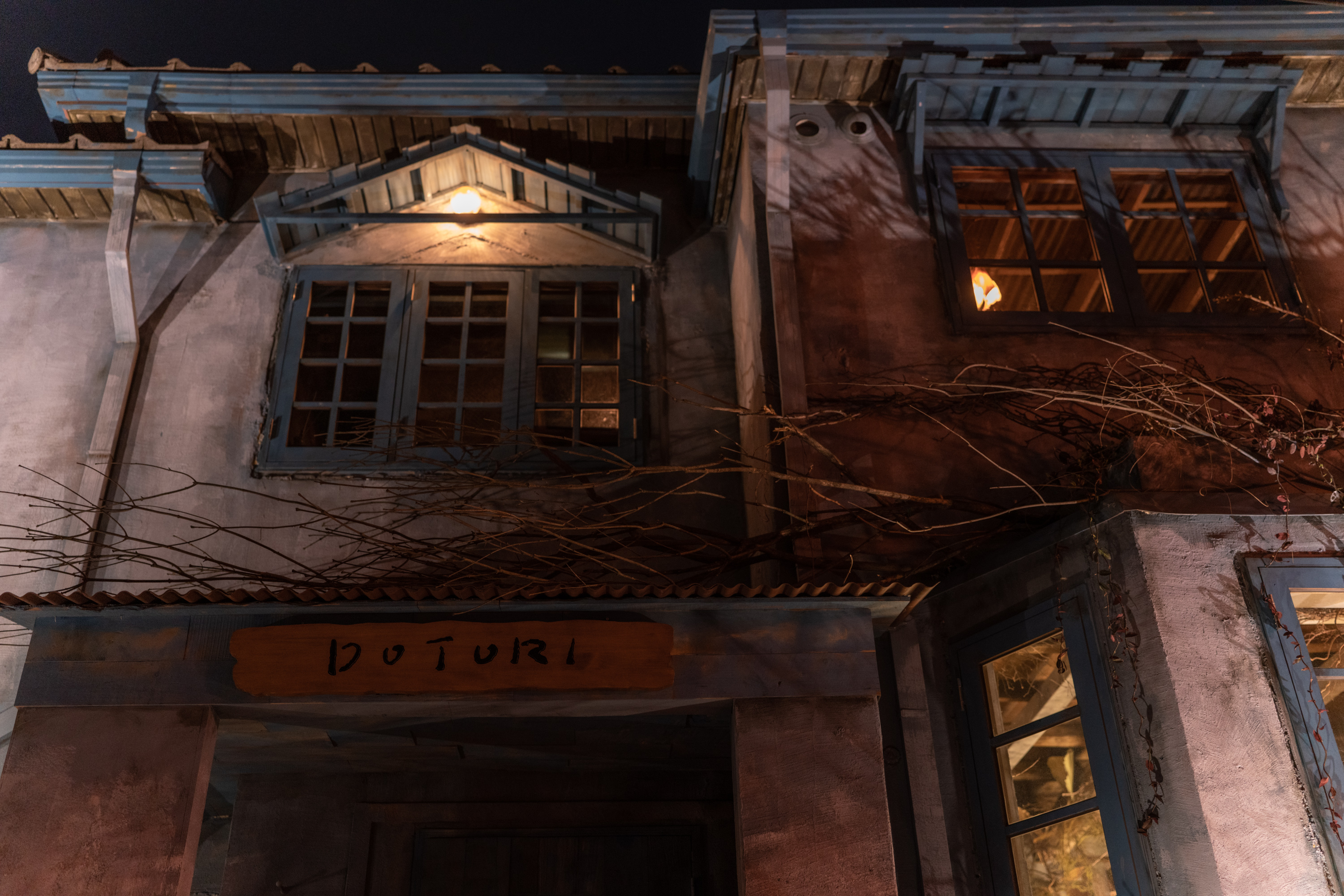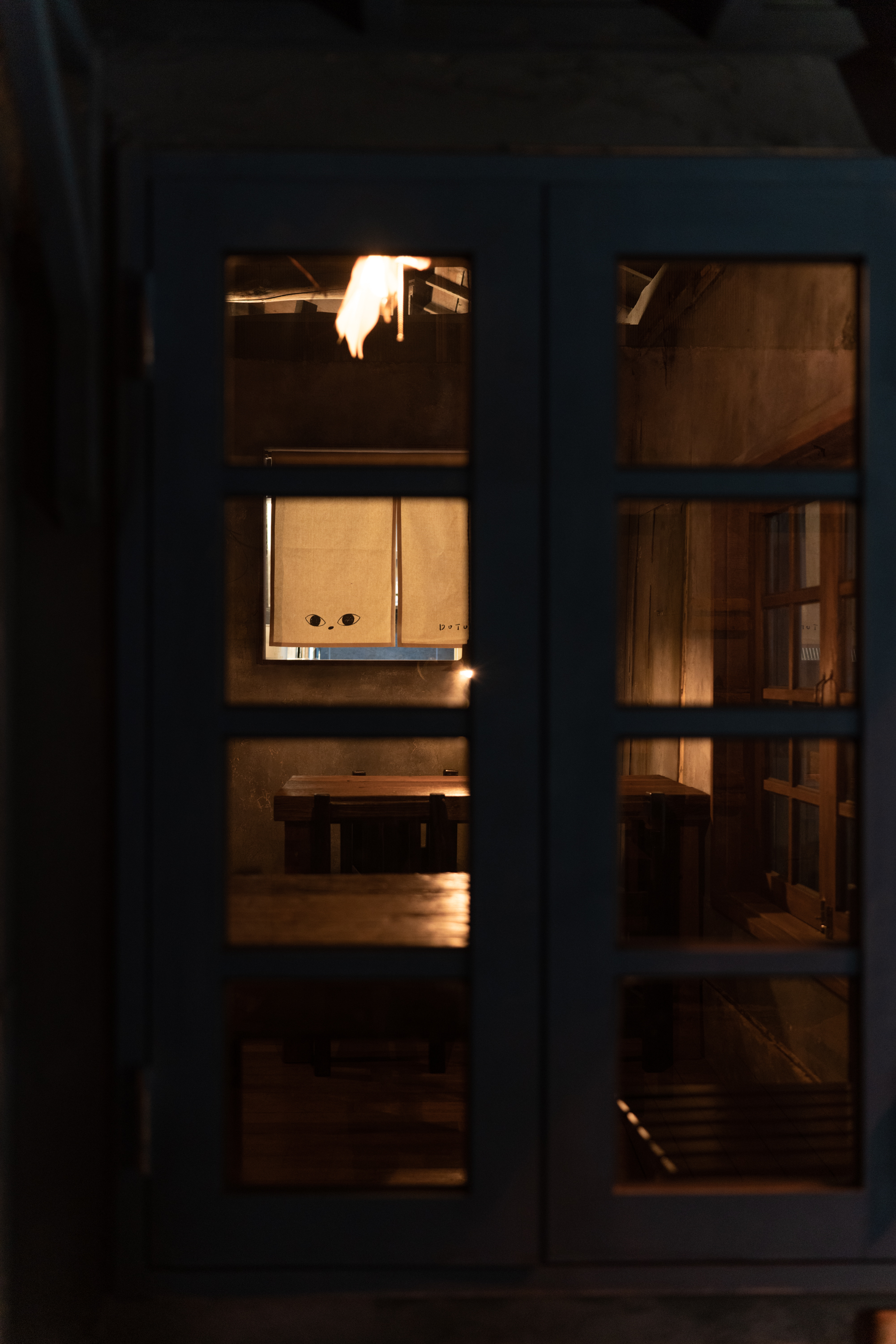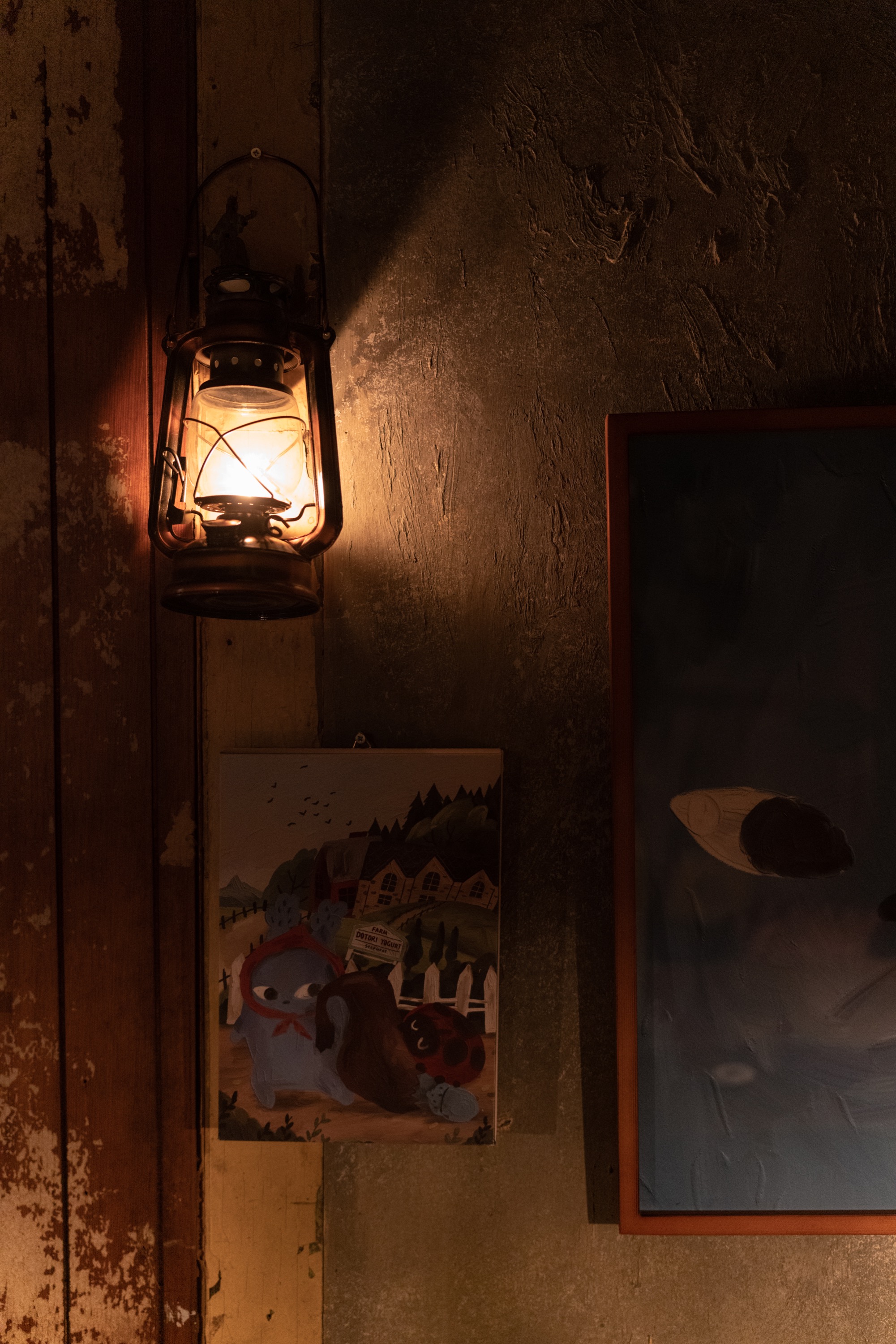 낡은 파란색 2층 집을 연출한 건물 외관이 골목길 속에서 단연 눈에 띕니다. 저는 밤에 방문해서 어둠에 가린 모습밖에 못 봤는데, 밝을 때 보면 더 그럴듯 할 것 같습니다. 내부 인테리어 역시 바깥에서 상상했던 대로 낡은 집을 연상시킵니다. 조명이 어둑어둑하고 낡은 나무 테이블이 있습니다.