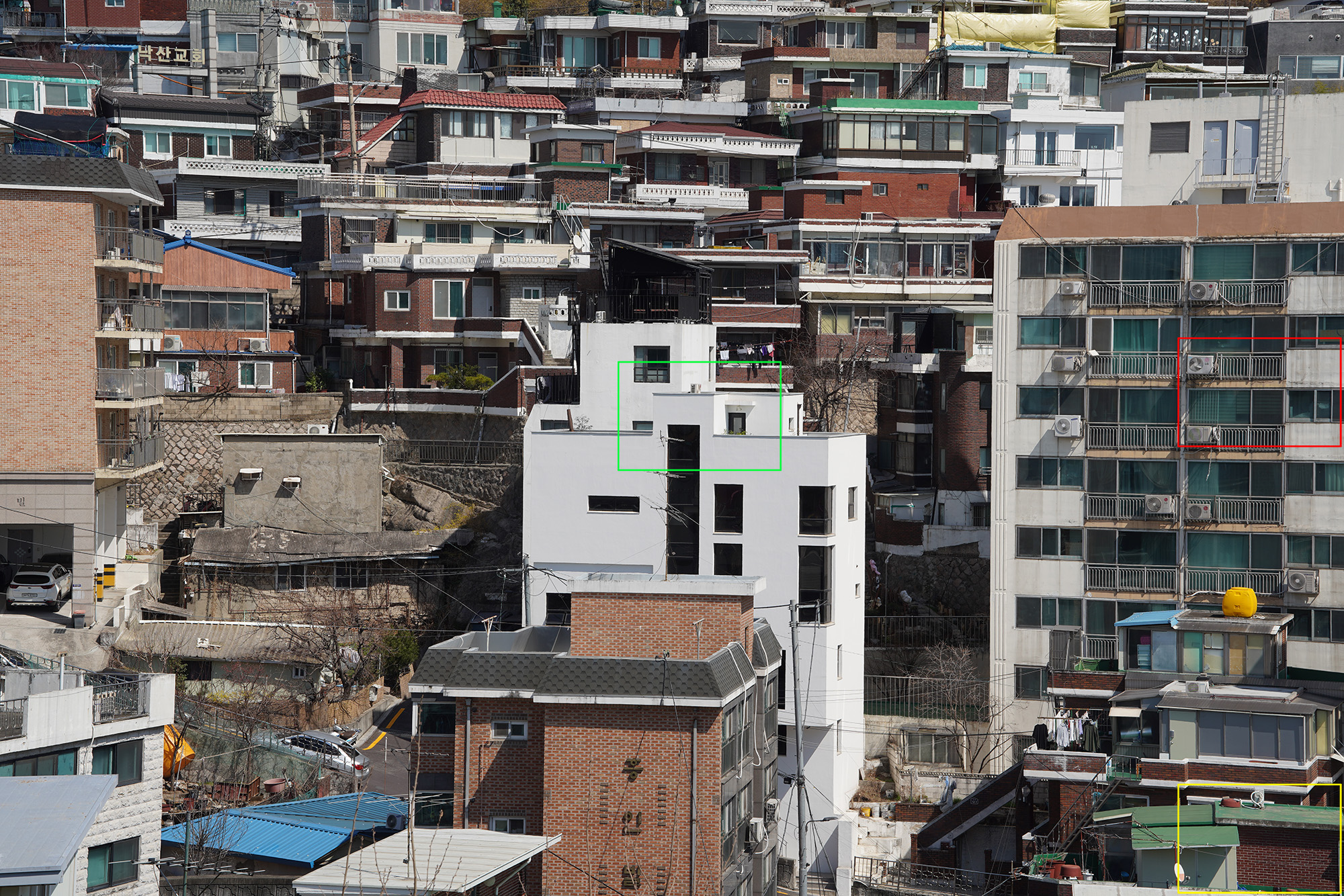 위 이미지는 F8 조리개 값으로 촬영한 35mm 이미지를 확대한 것입니다. 원본의 일부분을 추출한 것임을 쉽게 알 수 없을 정도로 윤곽선과 작은 피사체의 표현이 모두 뛰어납니다. A7R3 카메라의 4200만 화소 이미지를 표현하는 데 부족함이 없어 보입니다. 다른 초점거리보다 화질에 약점이 있는 35mm 최대 광각이라는 것을 주목할 필요가 있습니다. 특수 렌즈 7매가 포함된 고급 렌즈 구성, BBAR-G2 코팅 등 광학 성능 향상을 위한 탐론의 장치들이 좋은 결과물로 나타났다 평할 수 있습니다.