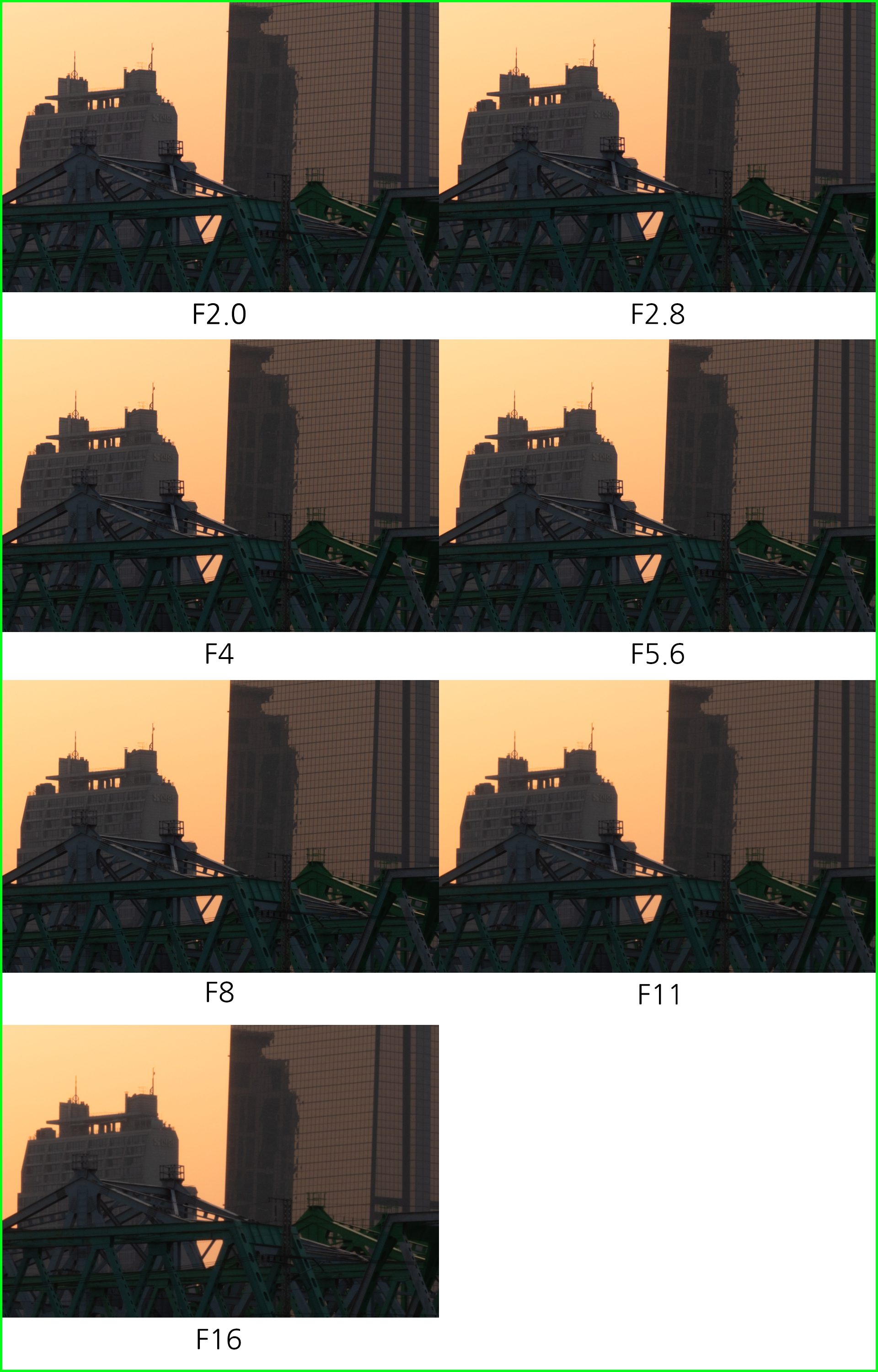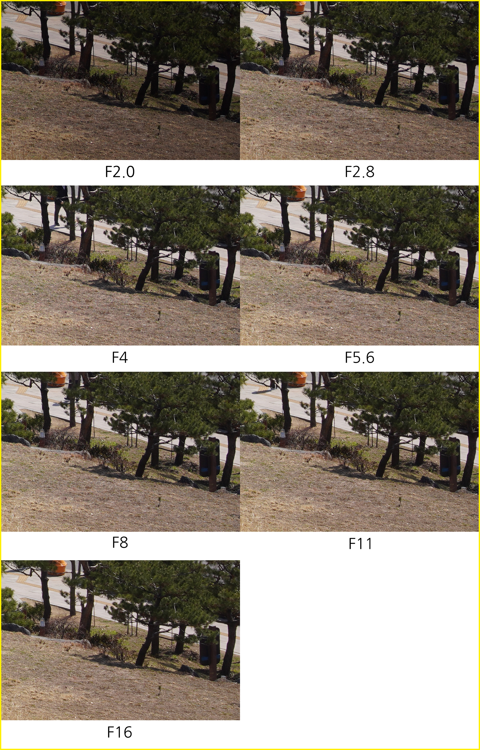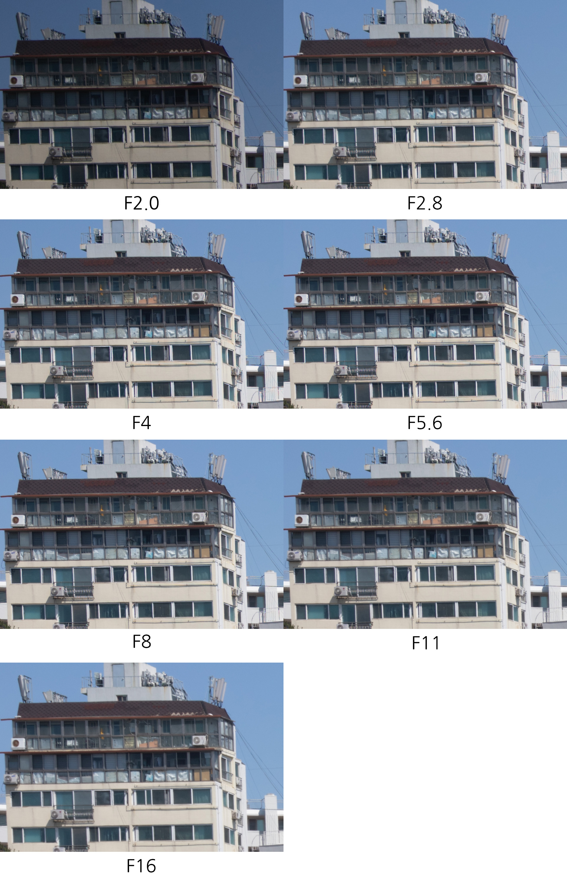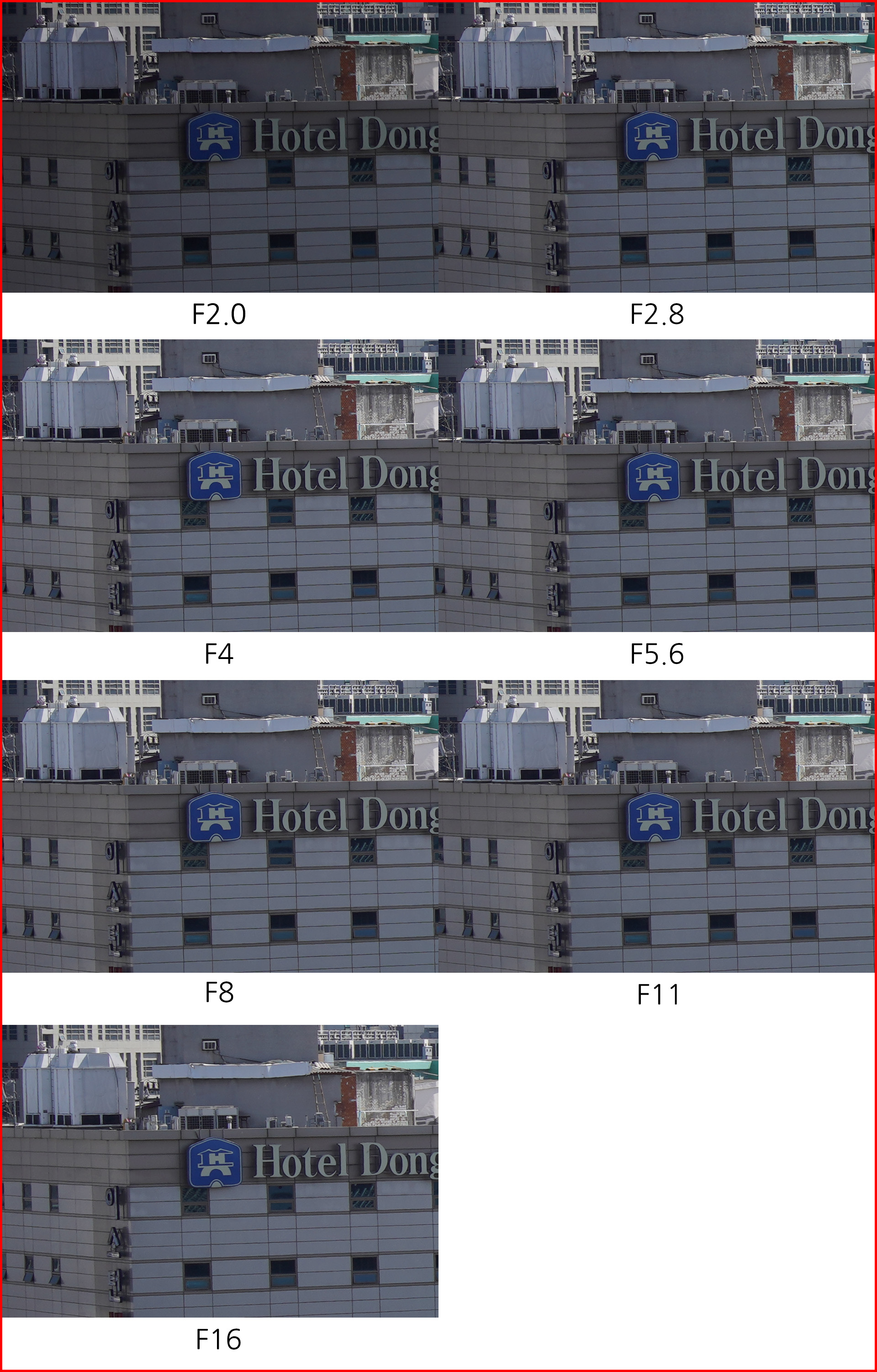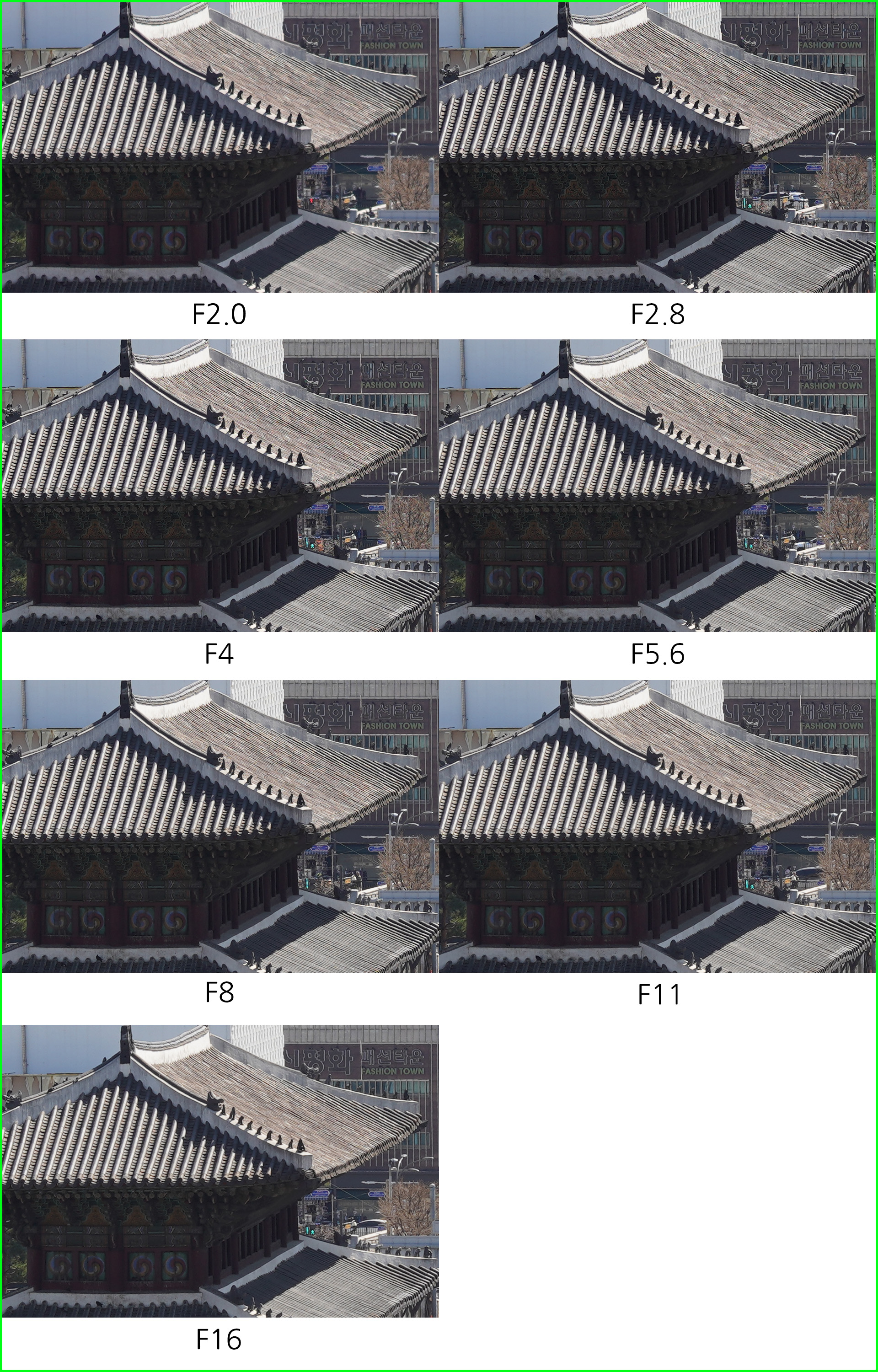 조리개 값에 따른 해상력 비교