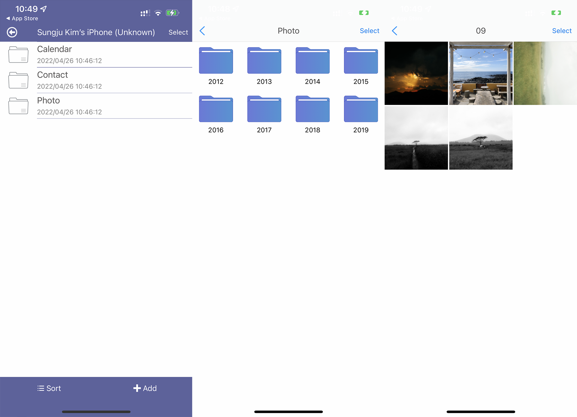 백업이 완료된 데이터는 앱 화면에서 즉시 확인할 수 있습니다. 촬영 년/월별로 사진이 분류돼 다수의 사진을 관리하기 편한 것이 인상적입니다. 직접 폴더를 만들어 사진을 관리하는 것이 생각보다 번거로운 일이죠. 백업 데이터가 전용 확장자가 아니라 플랫폼에서도 접근할 수 있는 형태로 저장된다는 것도 편리합니다.