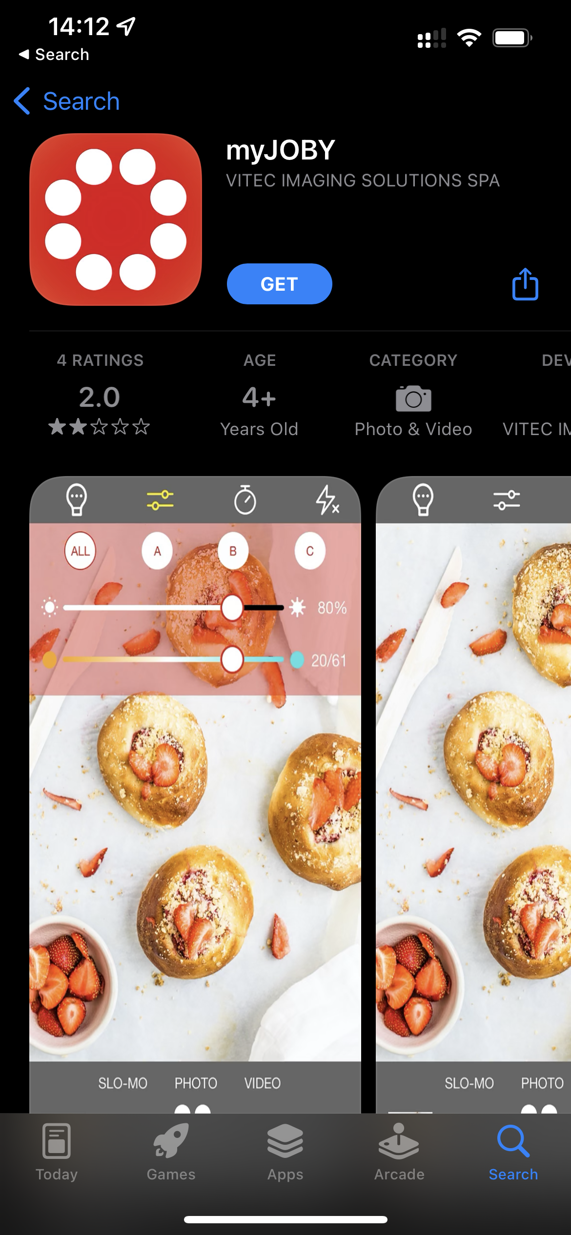 블루투스와 스마트폰 앱을 통해 비모의 조명을 간편하게 조절하고 촬영 모드를 설정할 수 있습니다. 전용 앱 myJOBY를 앱스토어에서 설치한 뒤 실행하면 전원이 켜 진 비모와 페어링하는 메뉴가 팝업됩니다. 이때 비모의 버튼쪽에 파란 불이 깜빡이는 것으로 블루투스 활성화를 확인할 수 있습니다.
