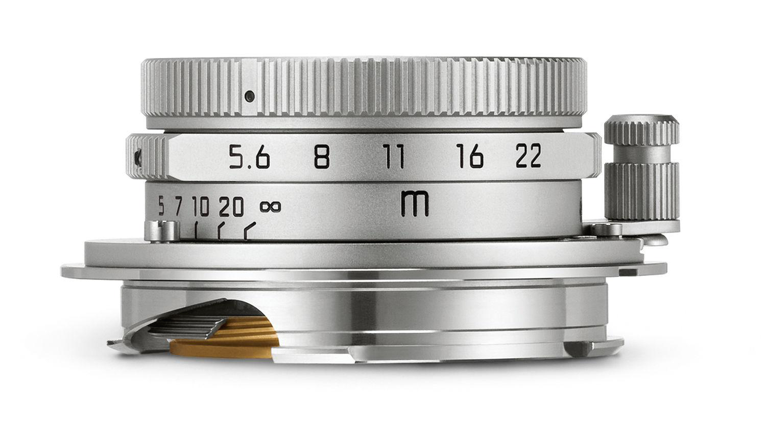 렌즈의 크기는 기대했던 대로 매우 작습니다. 돌출되는 길이가 약 15mm에 불과할만큼 짧고 경통 지름도 렌즈 마운트보다 짧습니다. M 디지털 카메라에 마운트하면 그야말로 앙증맞아 보입니다.