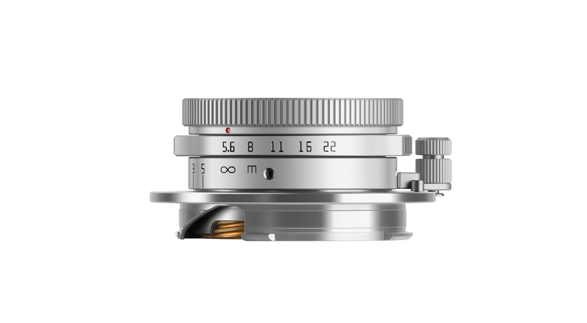 렌즈 마운트 지름보다도 작은 경통, 짧은 길이가 앙증맞습니다. 출시 당시부터 이 렌즈는 라이카 주마론 28mm F5.6 렌즈를 카피한 중국산 렌즈로 큰 화제가 됐습니다. 실제로는 렌즈 구성이 다르고, 디테일이나 마감도 차이가 있지만 따라 만들었다는 얘기를 피할 순 없습니다. 게다가 후드까지.